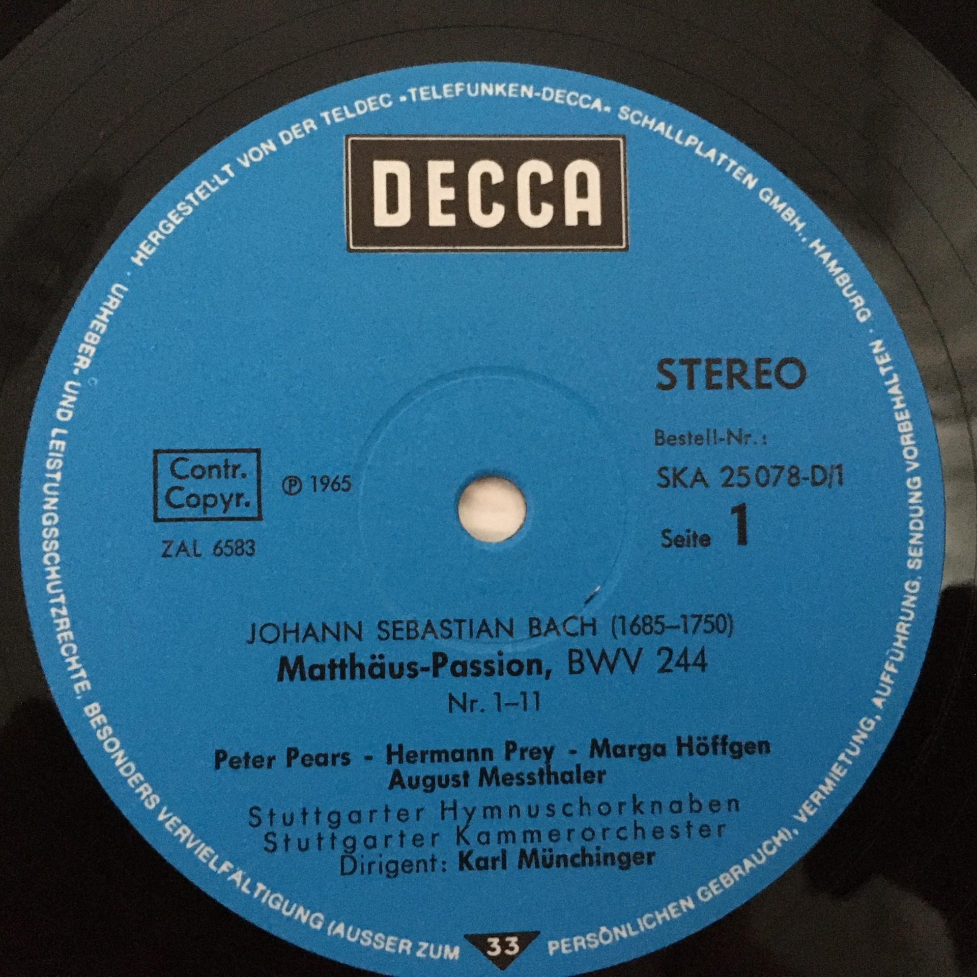 E133 Bach St. Matthew Passion Pears Munchinger 4LP DECCA SKA 25078-D/1-4 Stereo