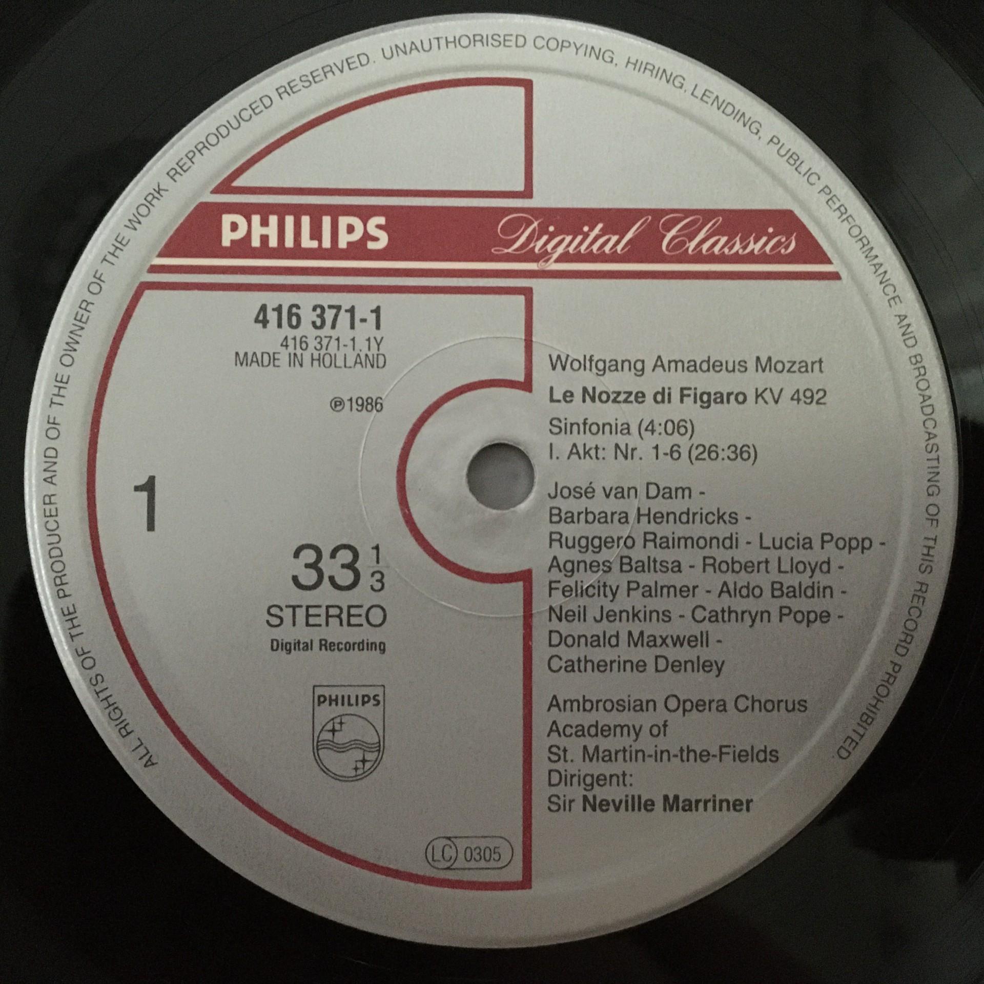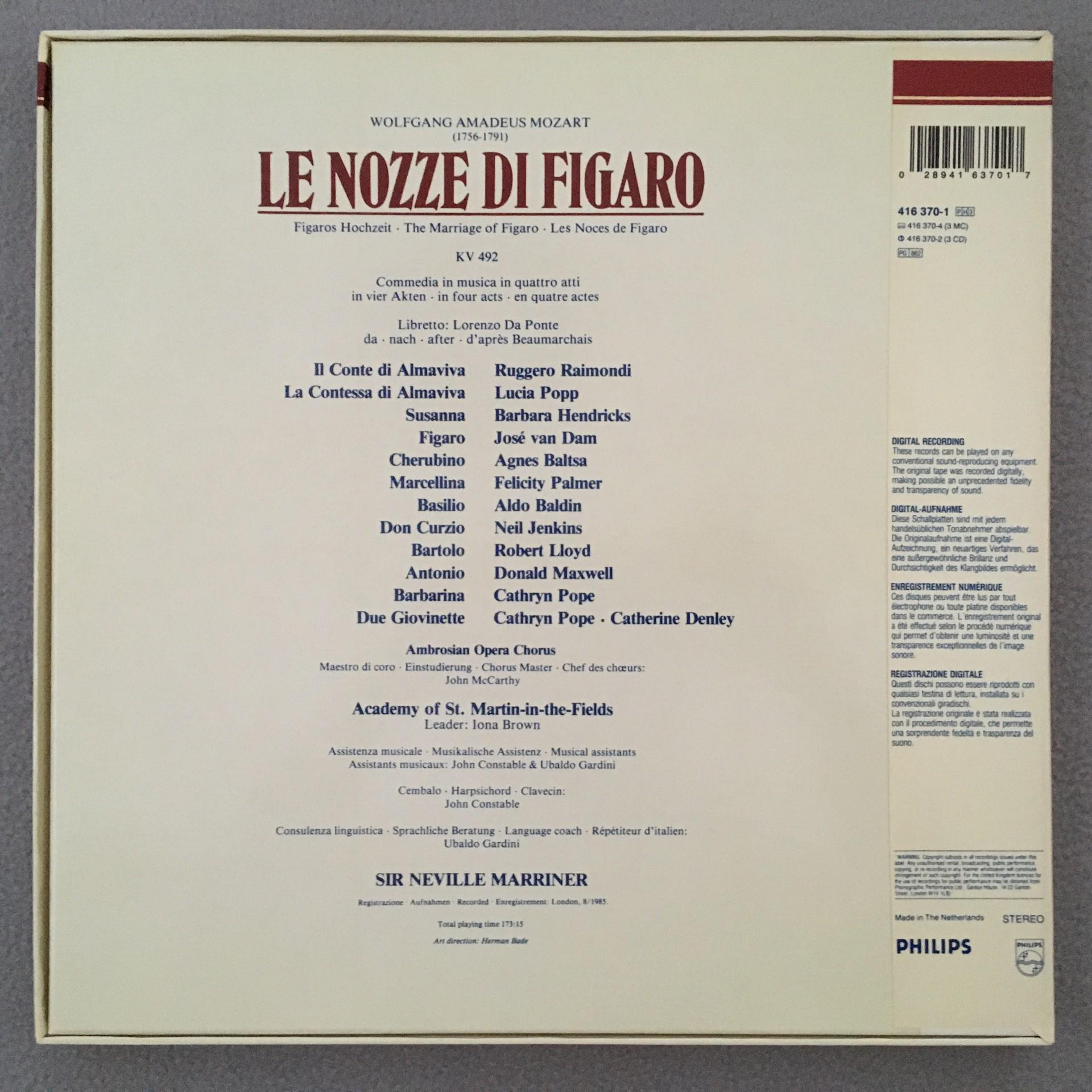E137 Mozart Le Nozze di Figaro van Dam Marriner 3LP Philips 416 370-1 Dig Stereo