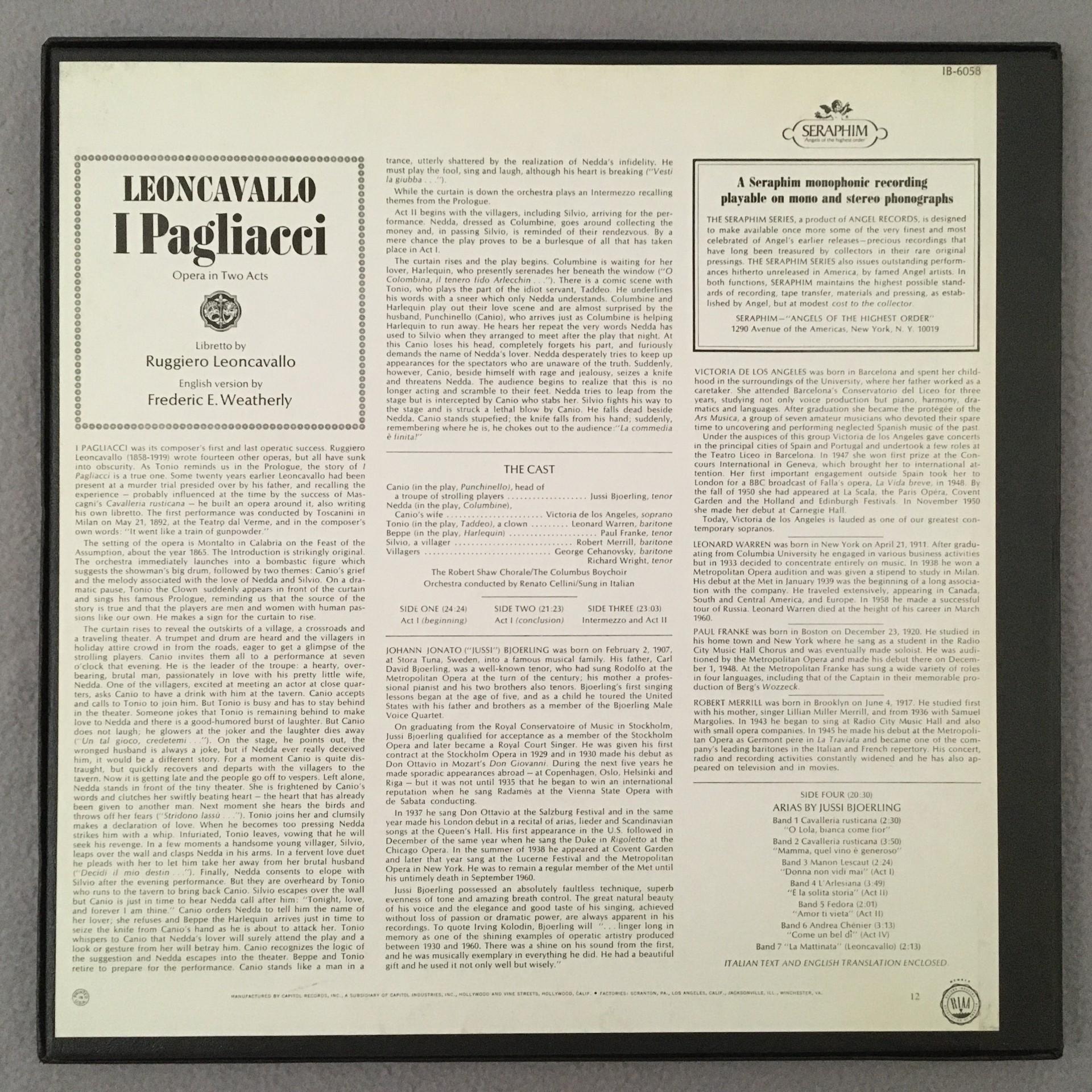 E140 Leoncavallo I Pagliacci de los Angeles Warren Cellini 2LP Seraphim IB-6058