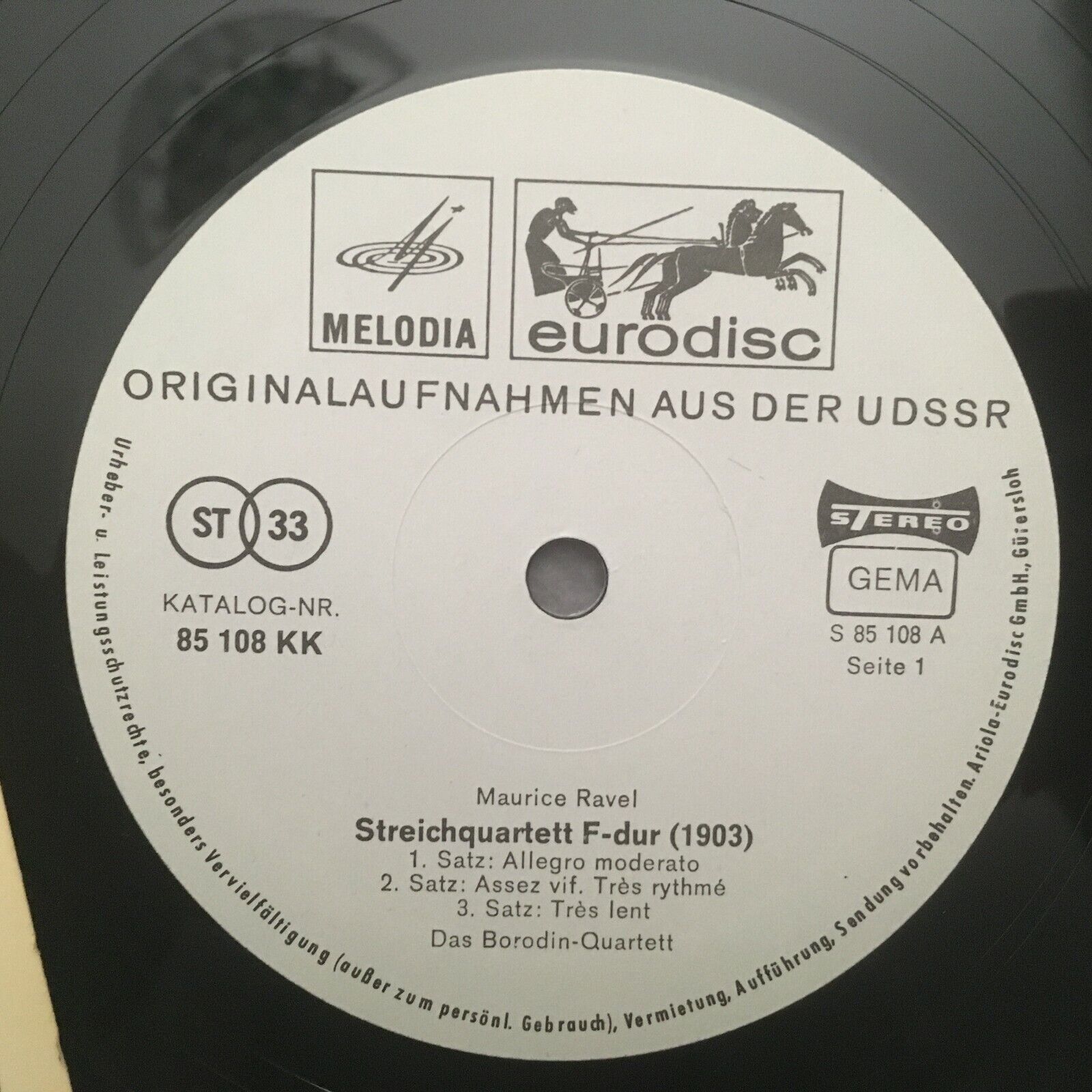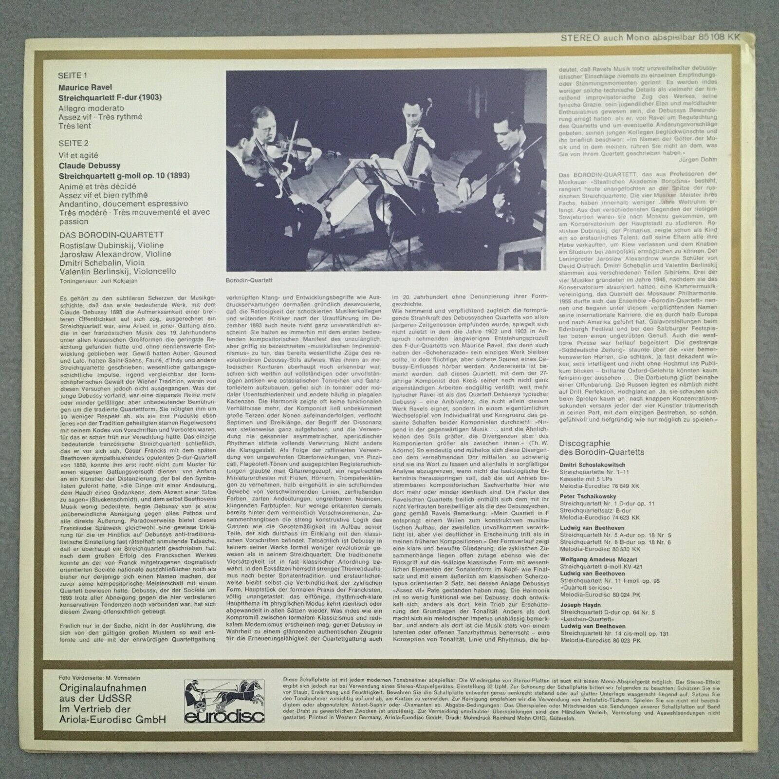 S949 Ravel Debussy String Quartets Borodin Quartet Eurodisc 85 108 KK Stereo
