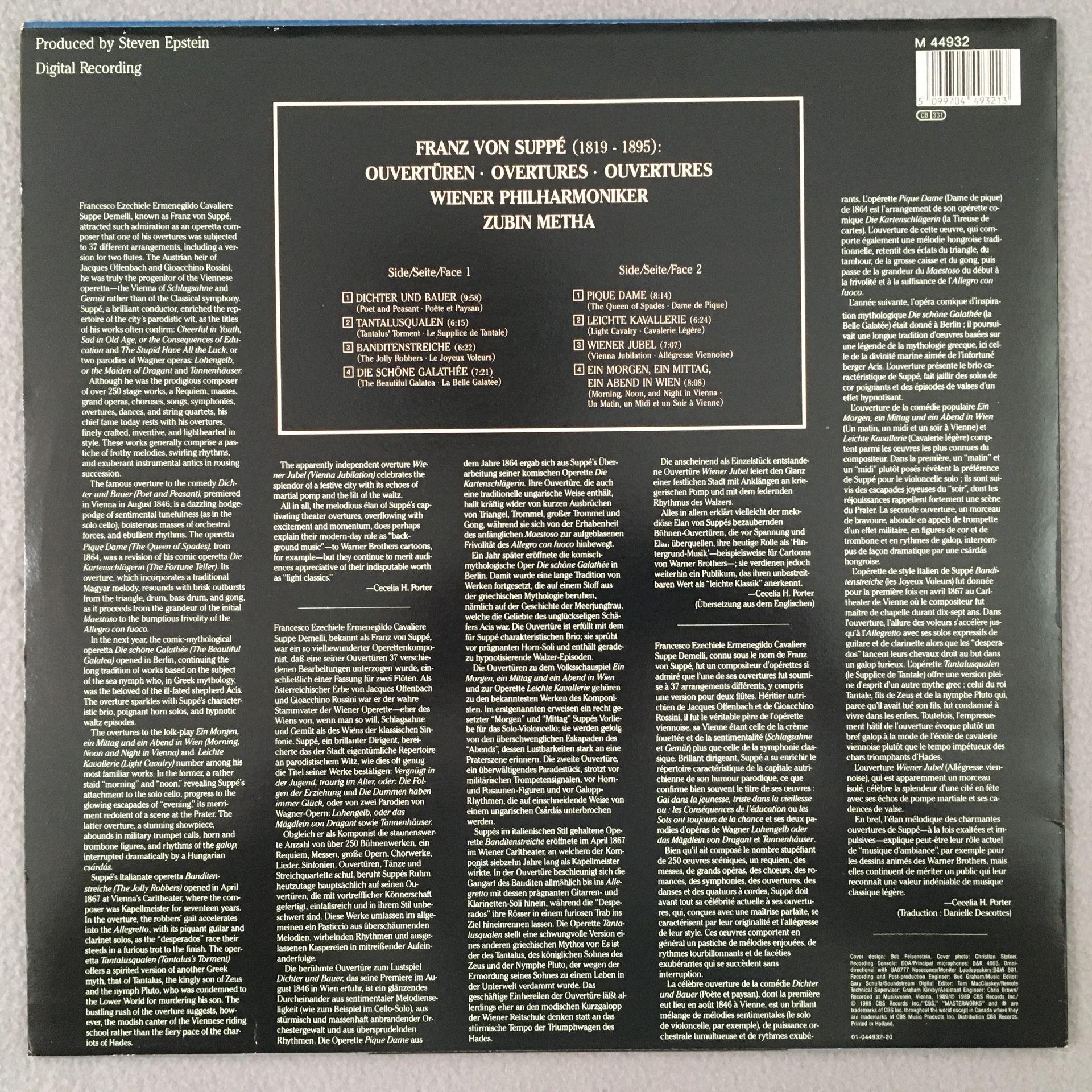 Q675 Suppe Overtures Mehta VPO CBS Masterworks M 44932 Digital Stereo