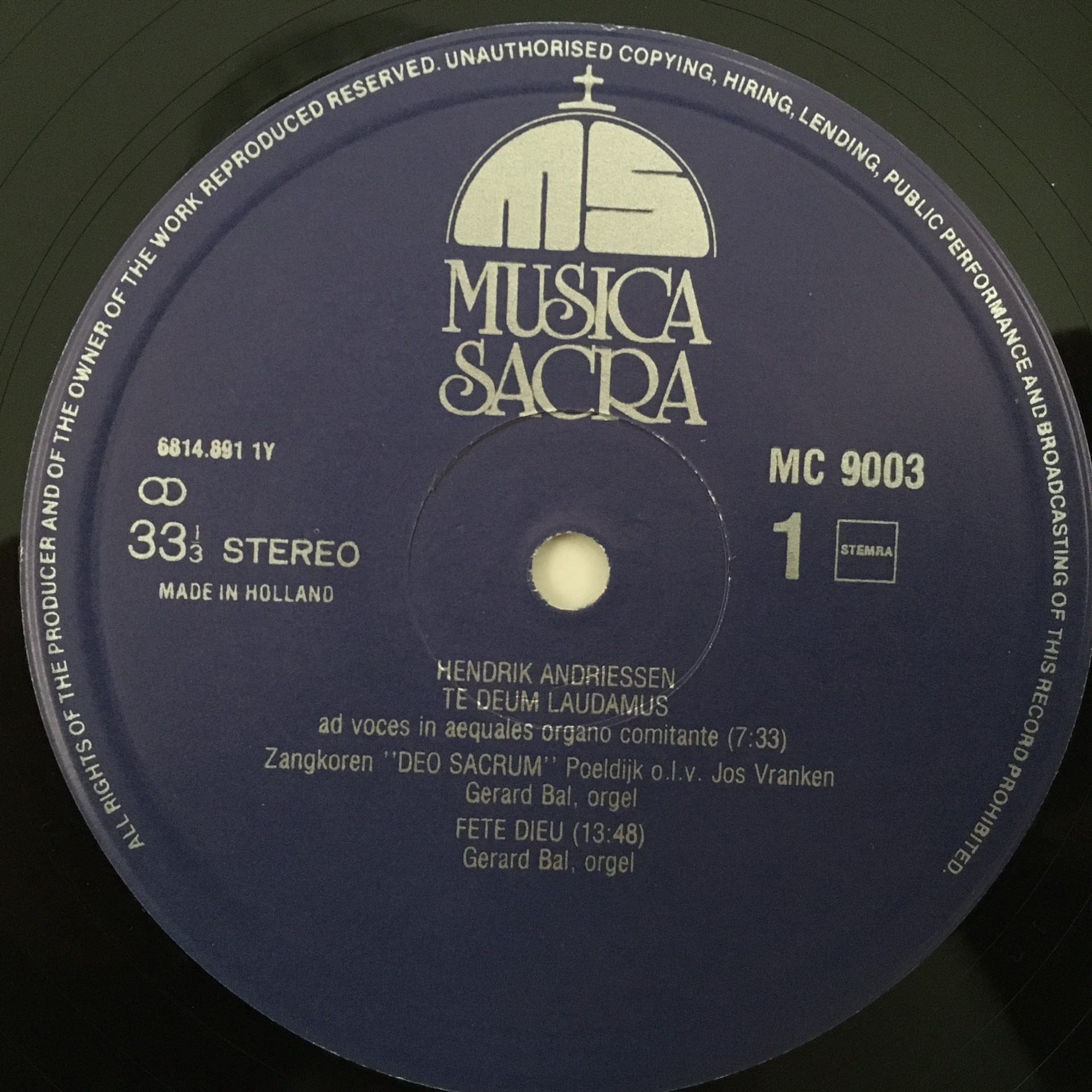 R364 Andriessen Te Deum Laudamus Bal Organ Vranken Musica Sacra MC 9003 St