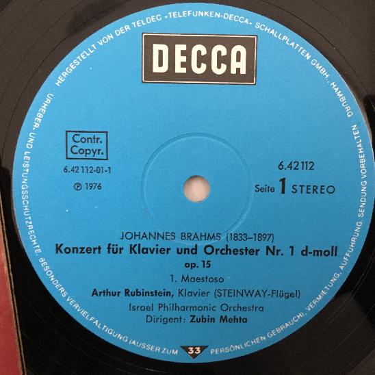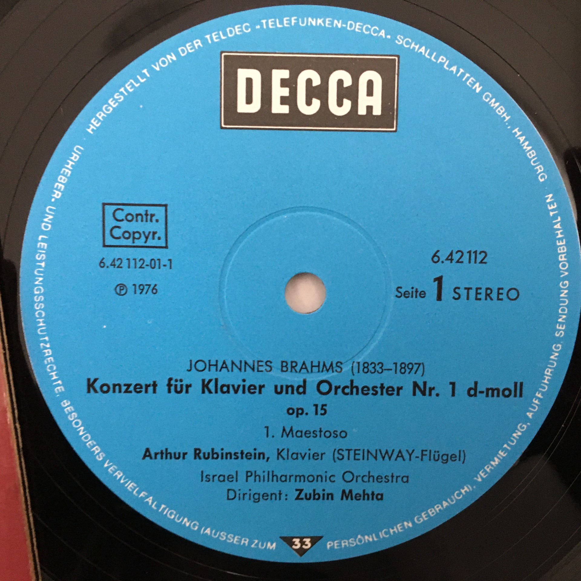 R366 Brahms Piano Concerto No.1 Rubinstein Mehta DECCA 6.42112 AW Stereo