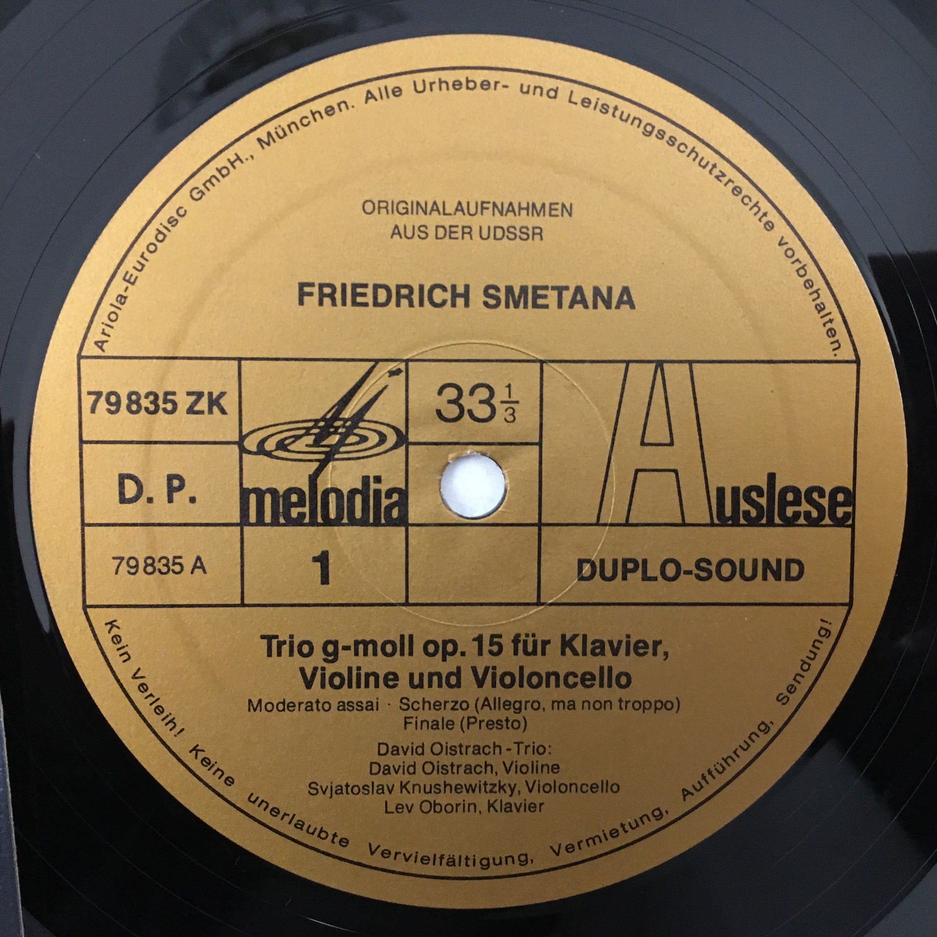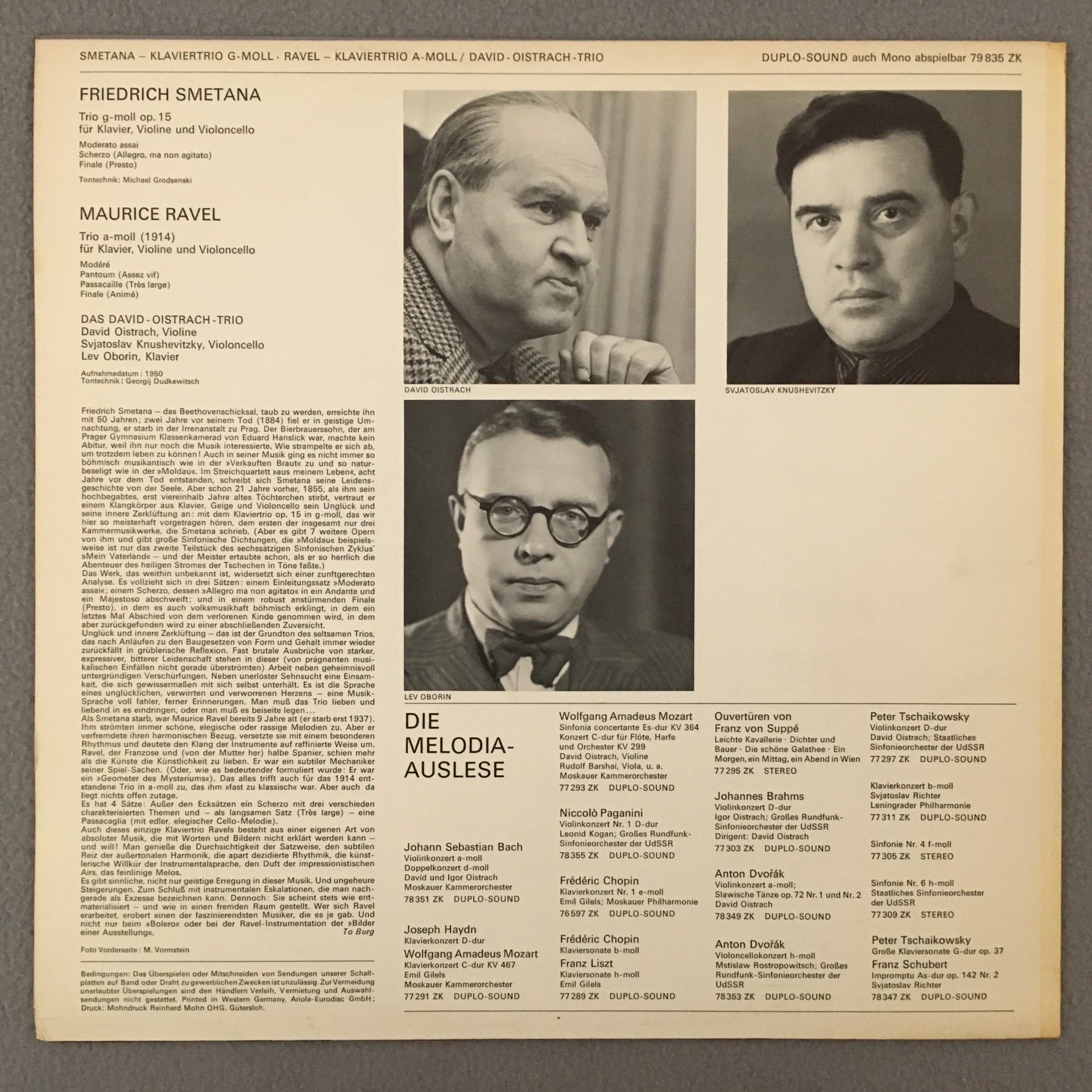 R370 Smetana Ravel Piano Trios Oistrakh Trio Melodiya 79 835 ZK Duplo Sound