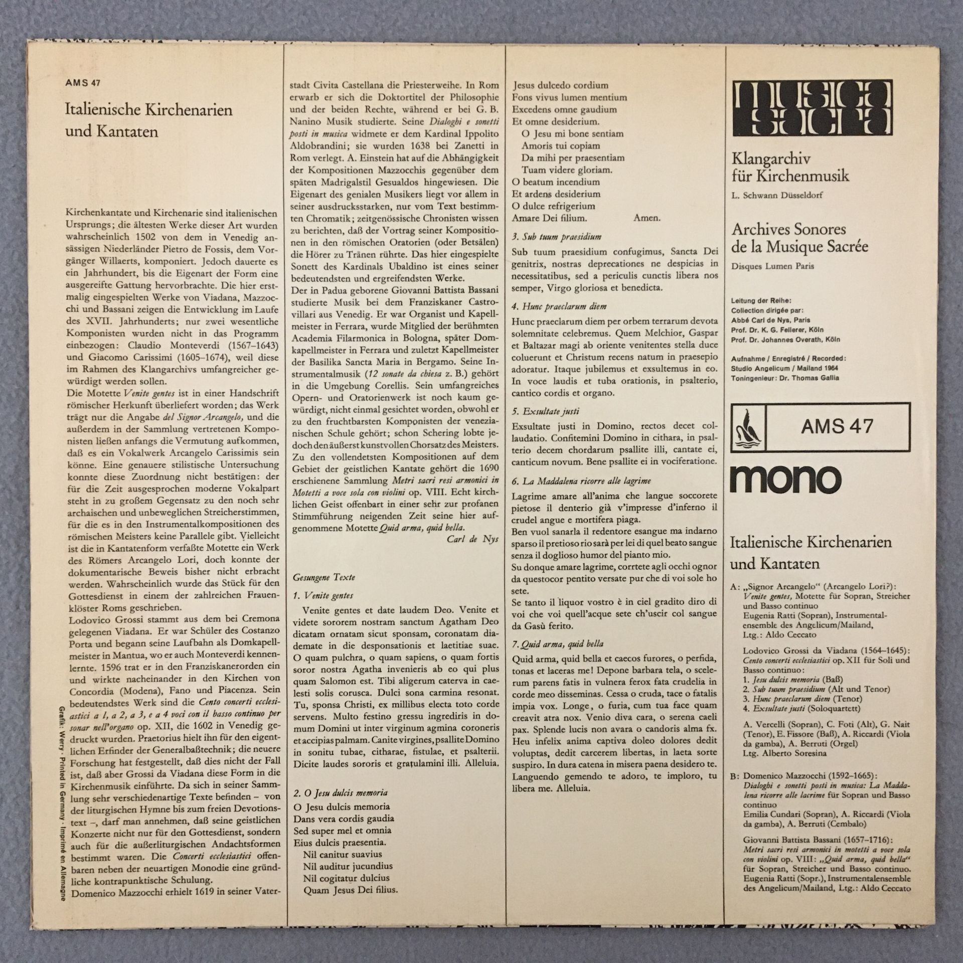 R372 Italian Church Arias Cantatas Lori Mazzocchi Vercelli Schwann AMS 47
