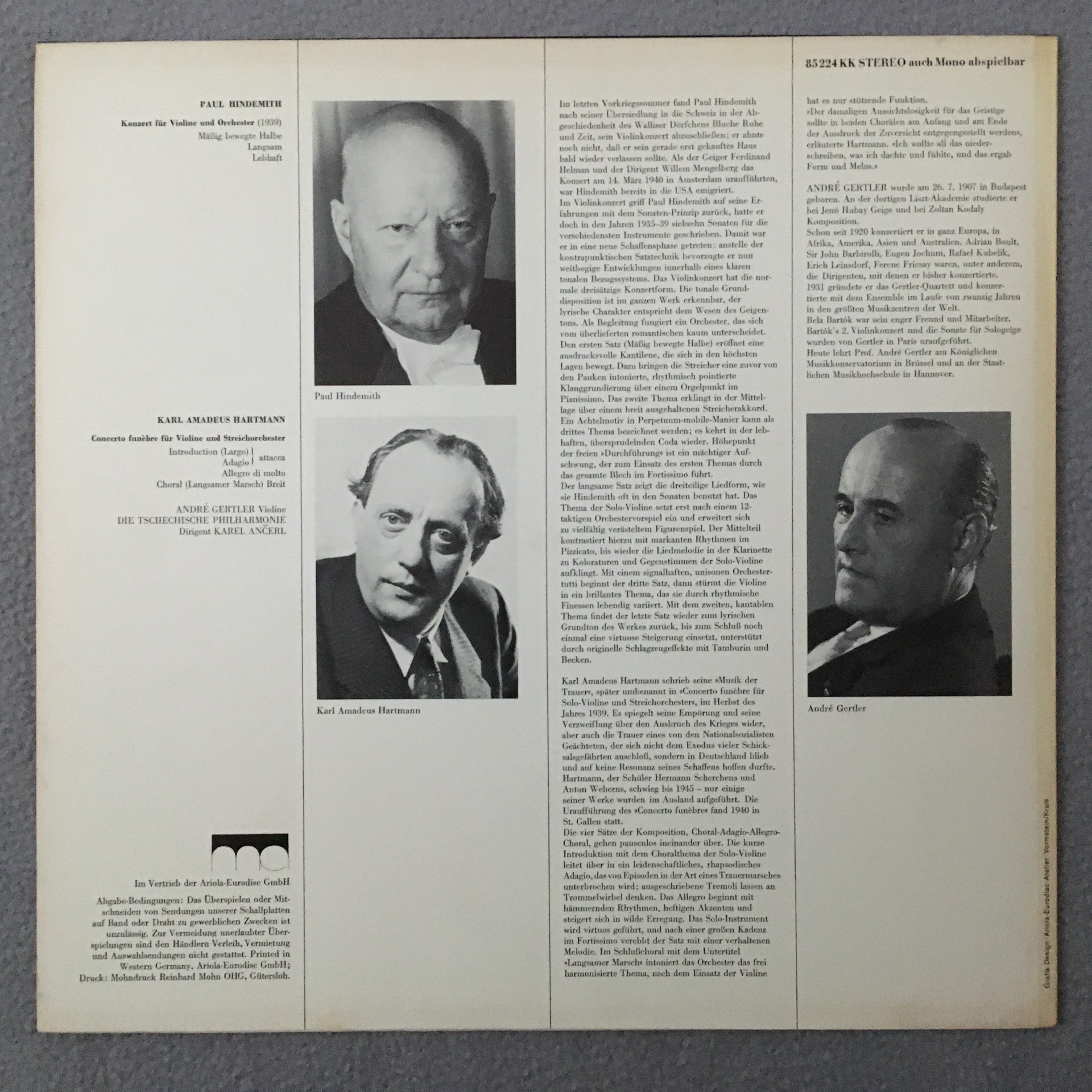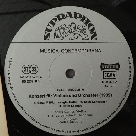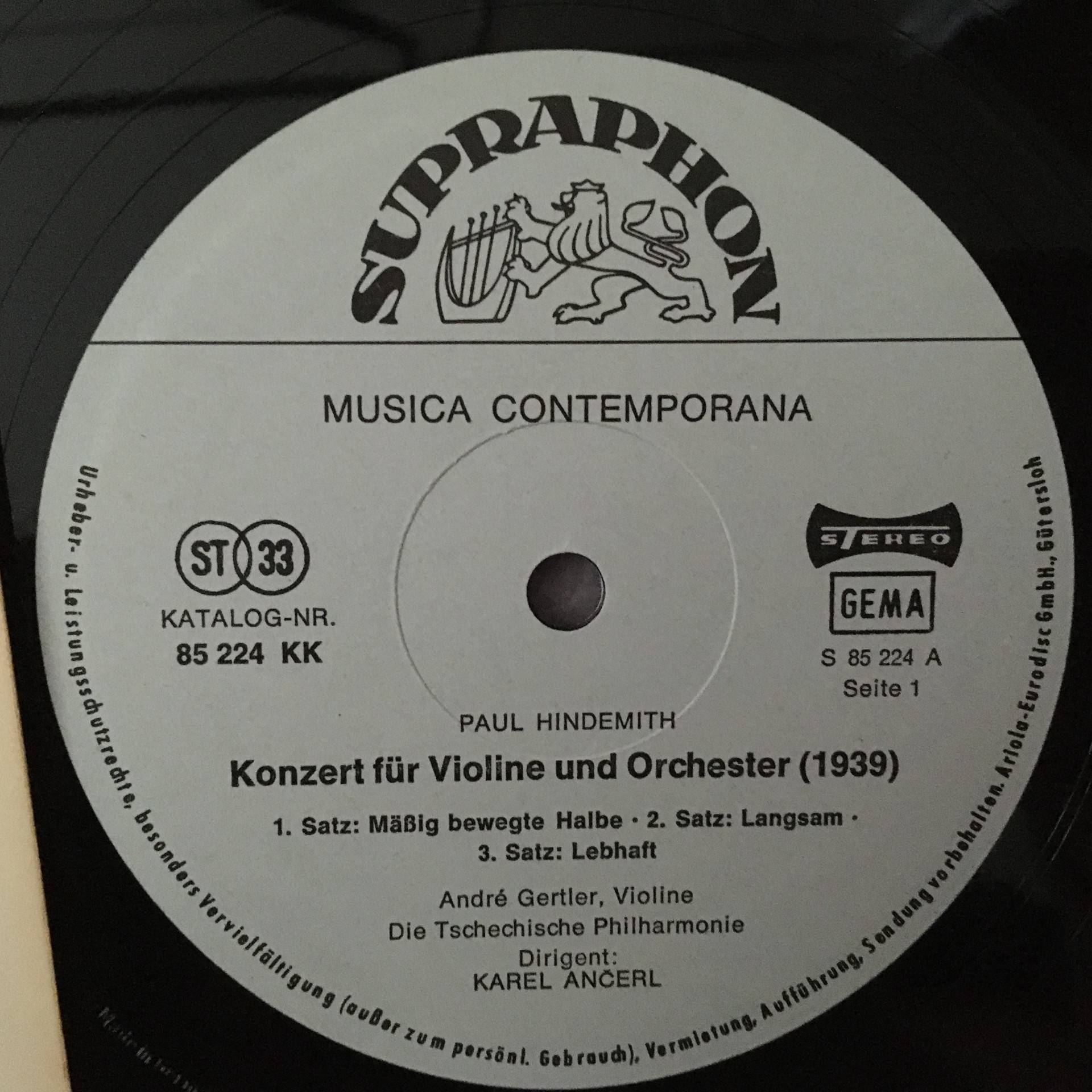 R373 Hindemith Violin Concerto Gertler Ancerl Supraphon 85 224 KK Stereo