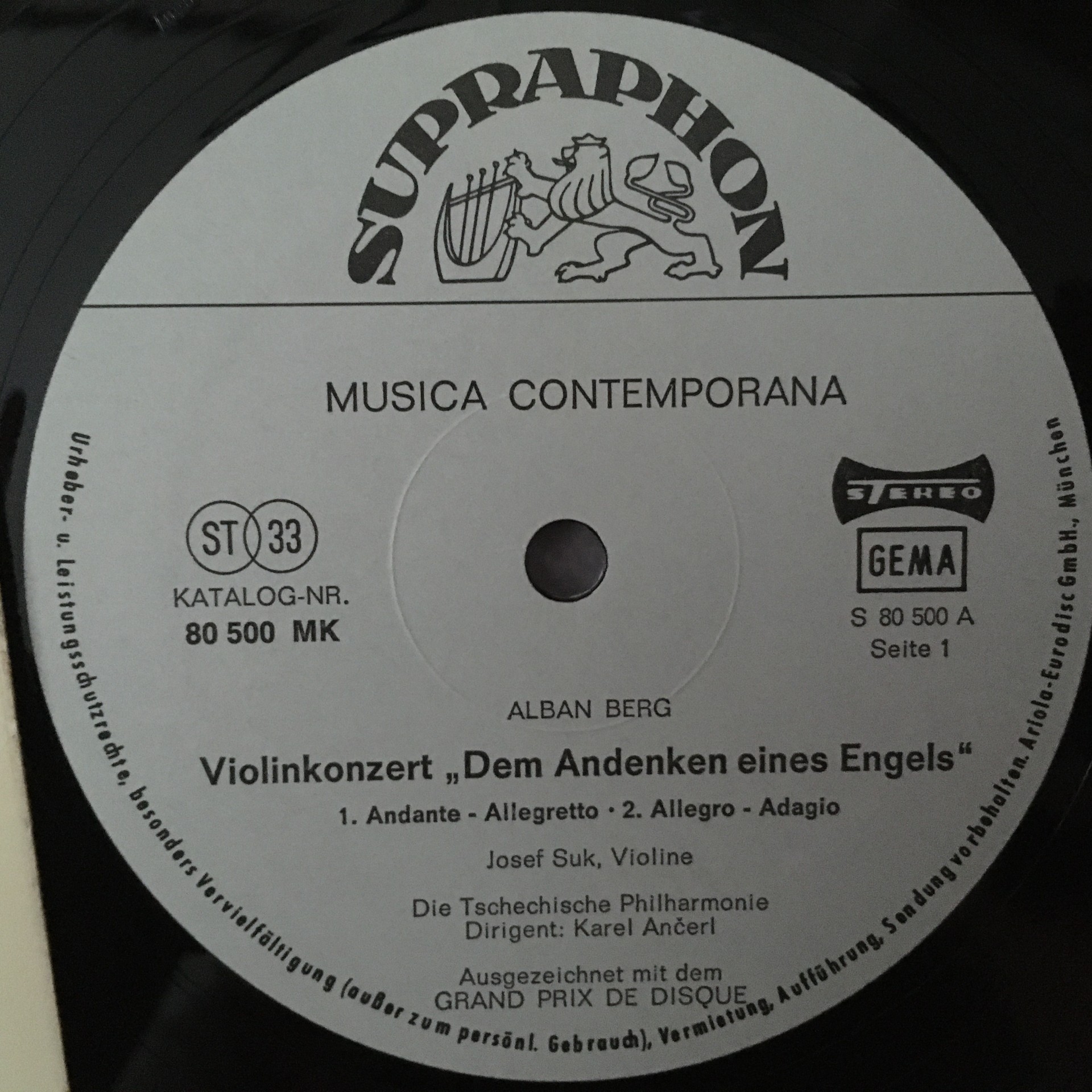 R376 Berg Violin Concerto Suk Ancerl Chamber Concerto Supraphon 80 500 PK Ster