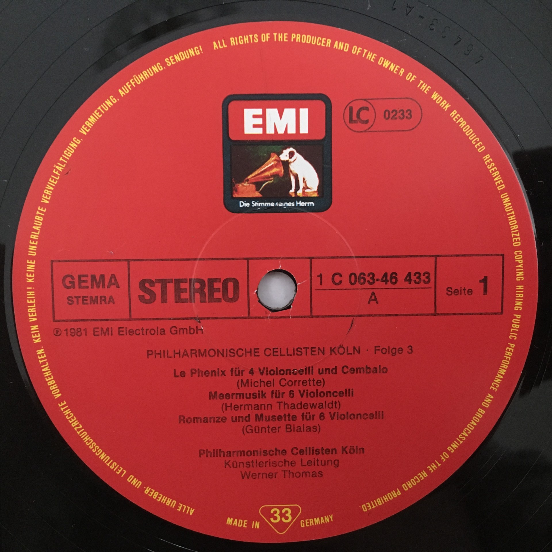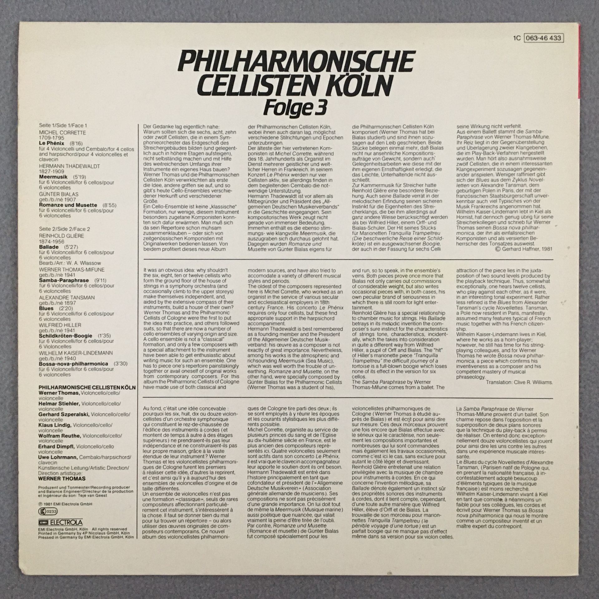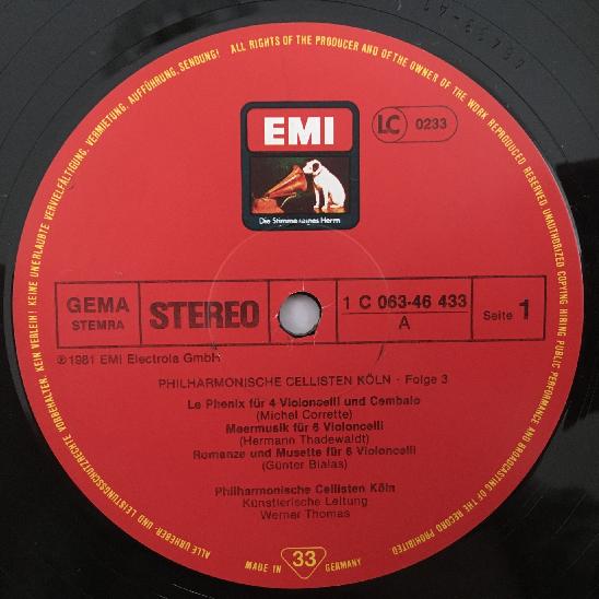 R380 Philharmonic Cellists Köln Thomas Stiehler Vol.3 EMI 1C 063.46 433 Stereo