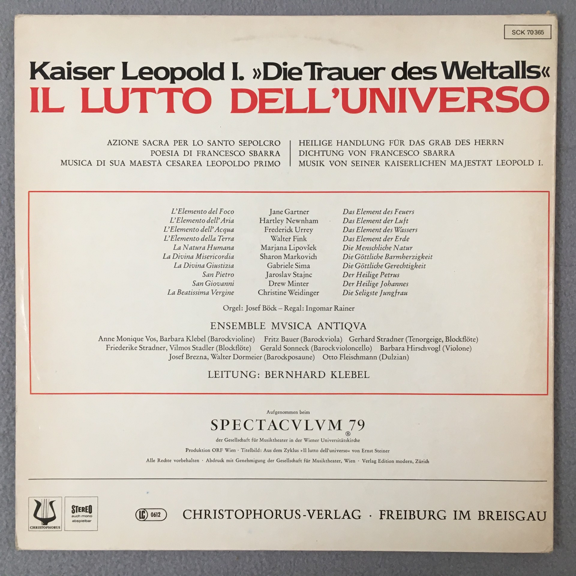 R388 Kaiser Leopold I. Il Lutto Dell´Universo 2LP Christophorus SCK 70 365 St