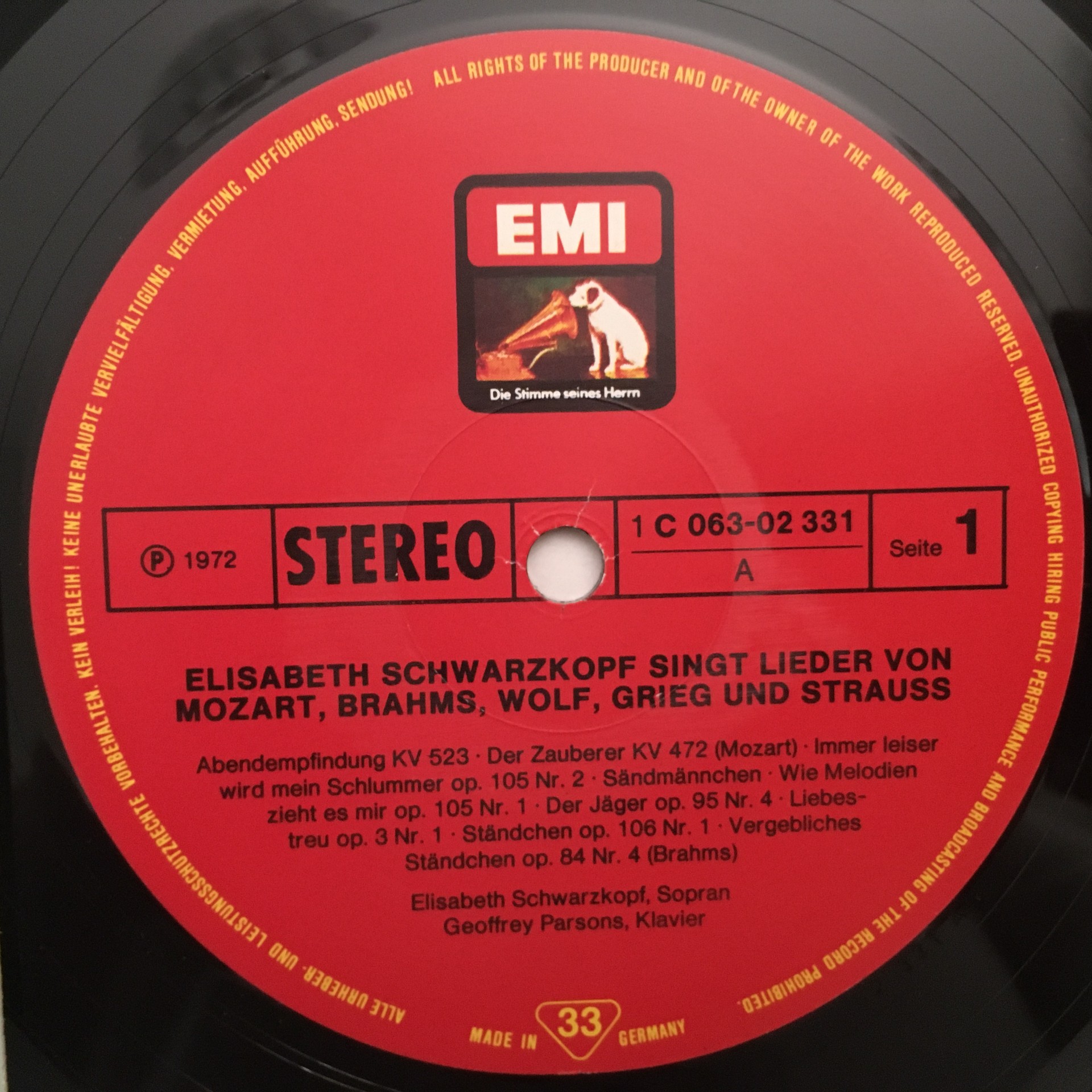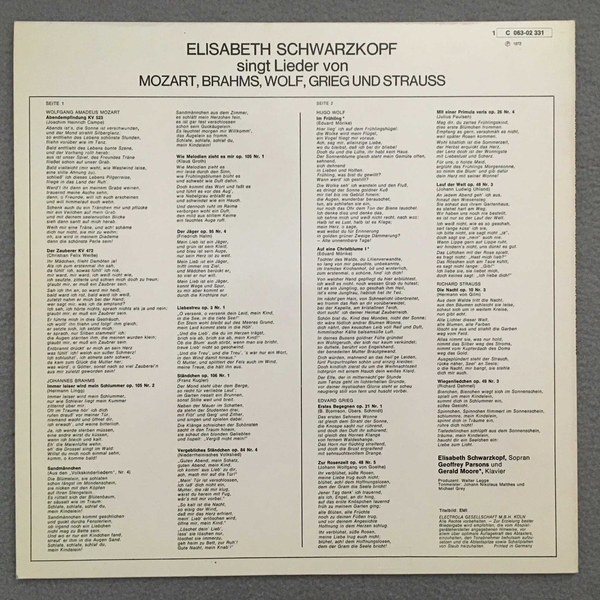 R397 Schwarzkopf Songs Mozart Brahms Wolf Grieg Moore EMI 1 C 063-02 331 Stereo