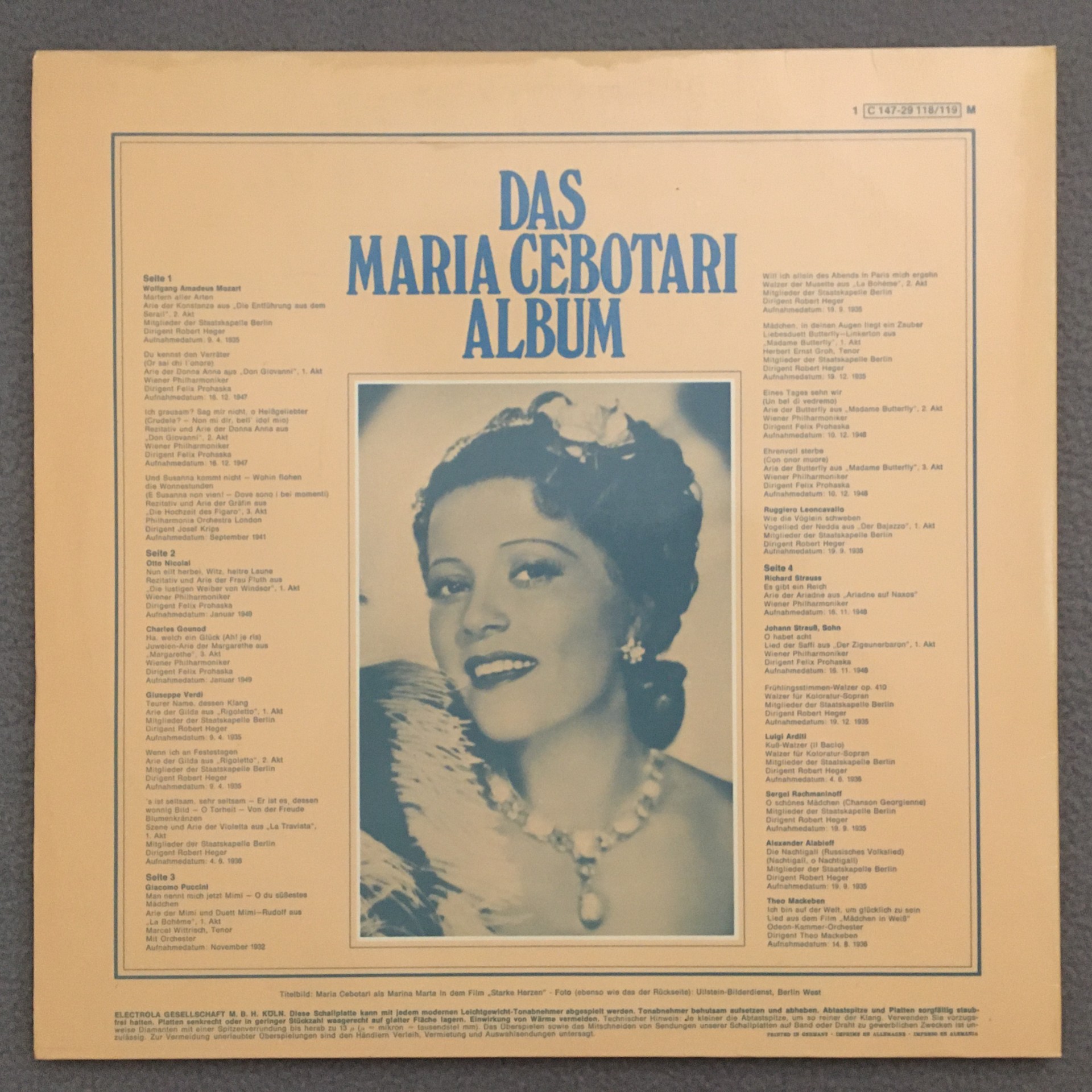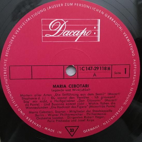 R398 Maria Cebotari Album 2LP Dacapo 1 C 147-29 118/119 M