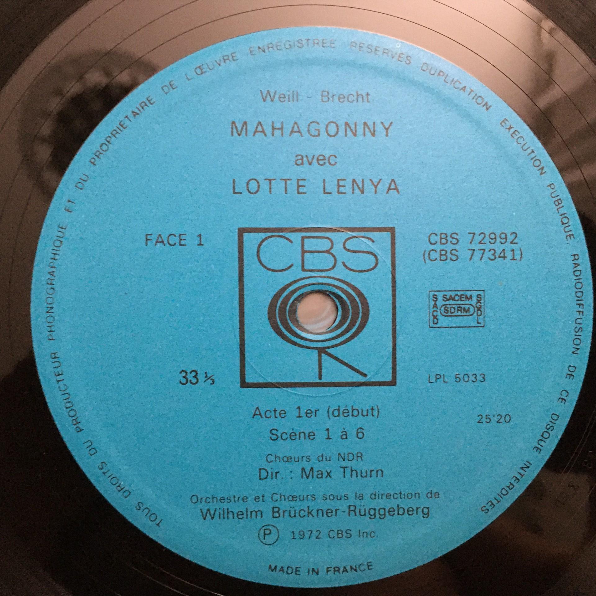 E156 Weill Brecht Mahagonny Lenya Brückner-Rüggeberg 3LP CBS 77341 Stereo