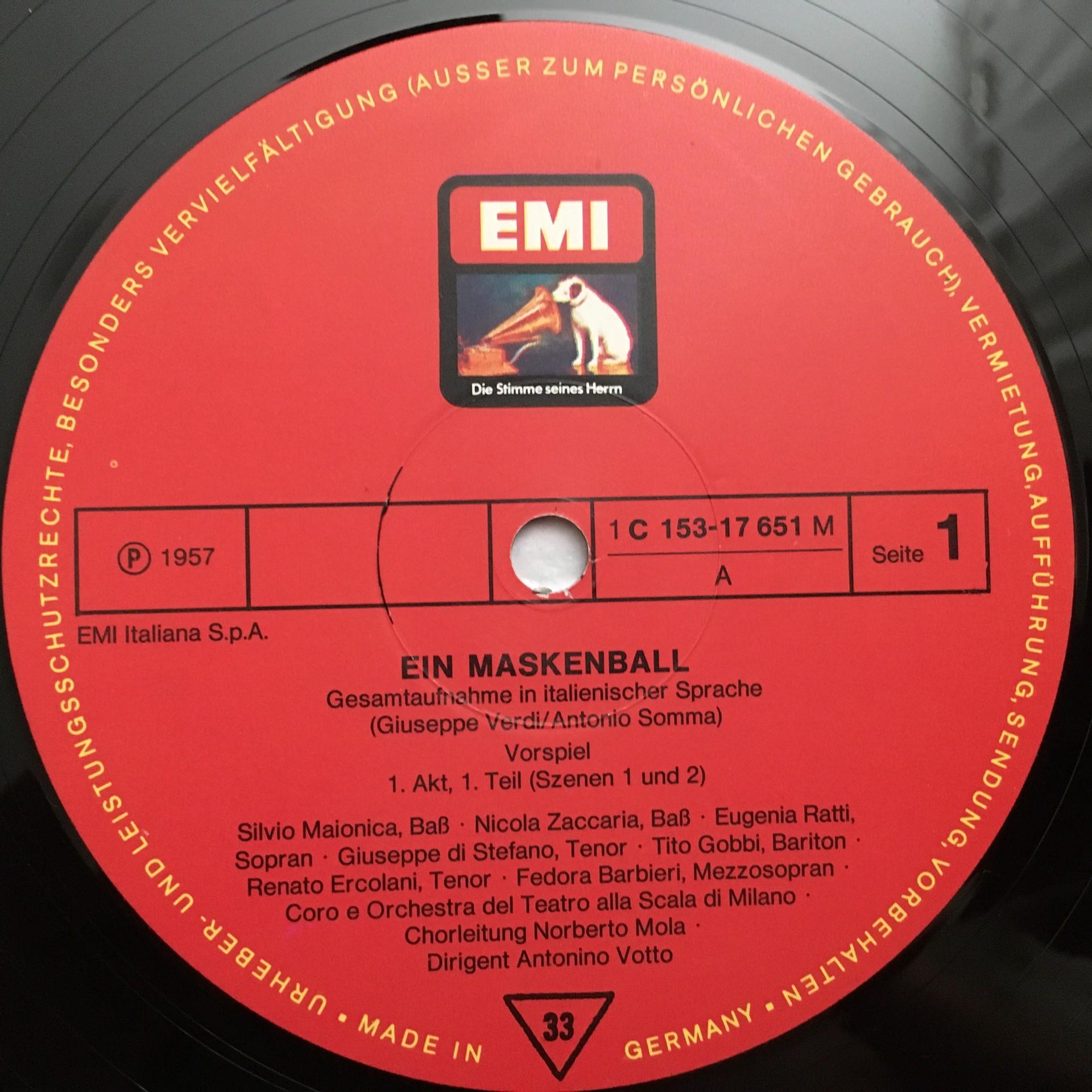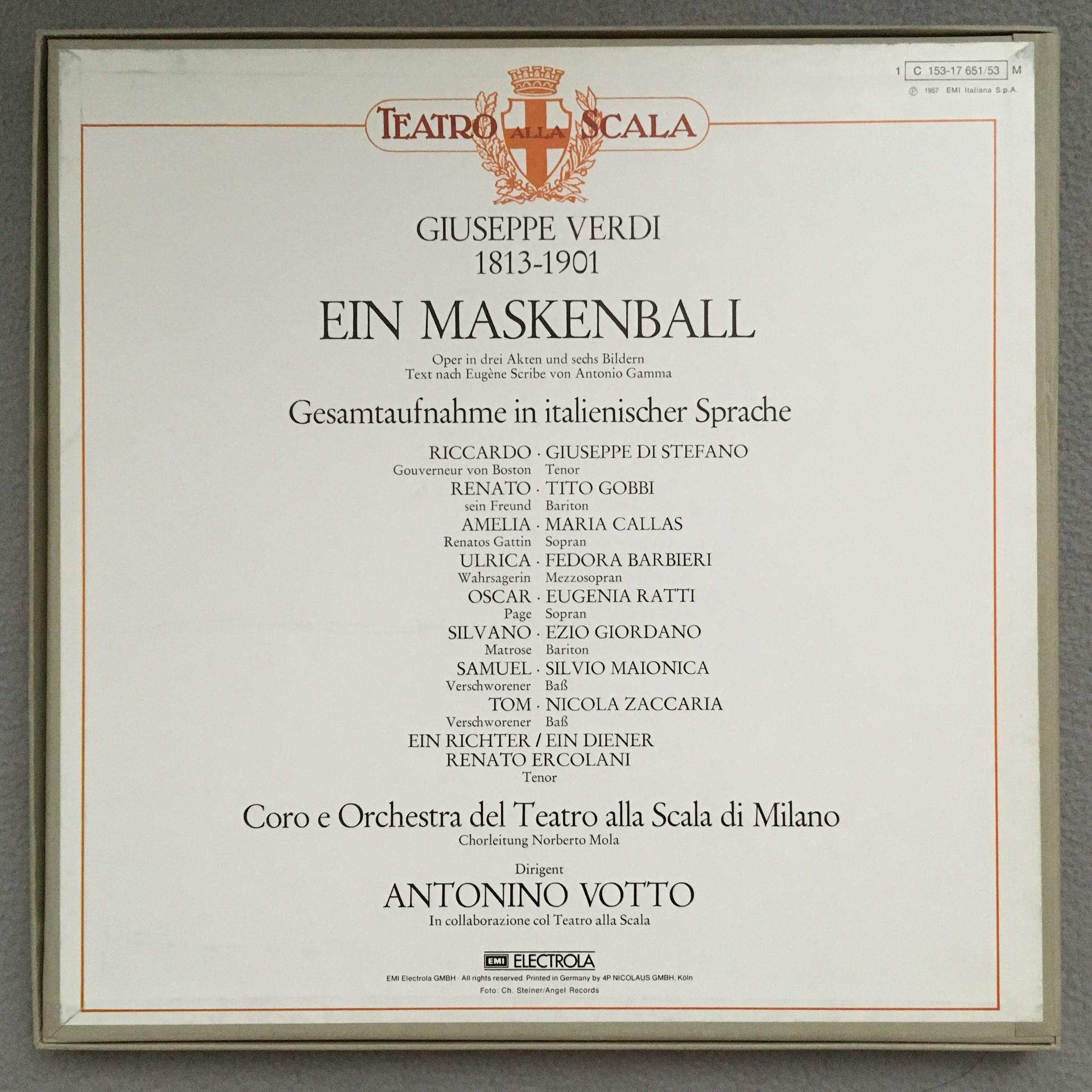 E159 Verdi Masked Ball Callas Votto 3LP EMI 1 C 153-17 651/53 M