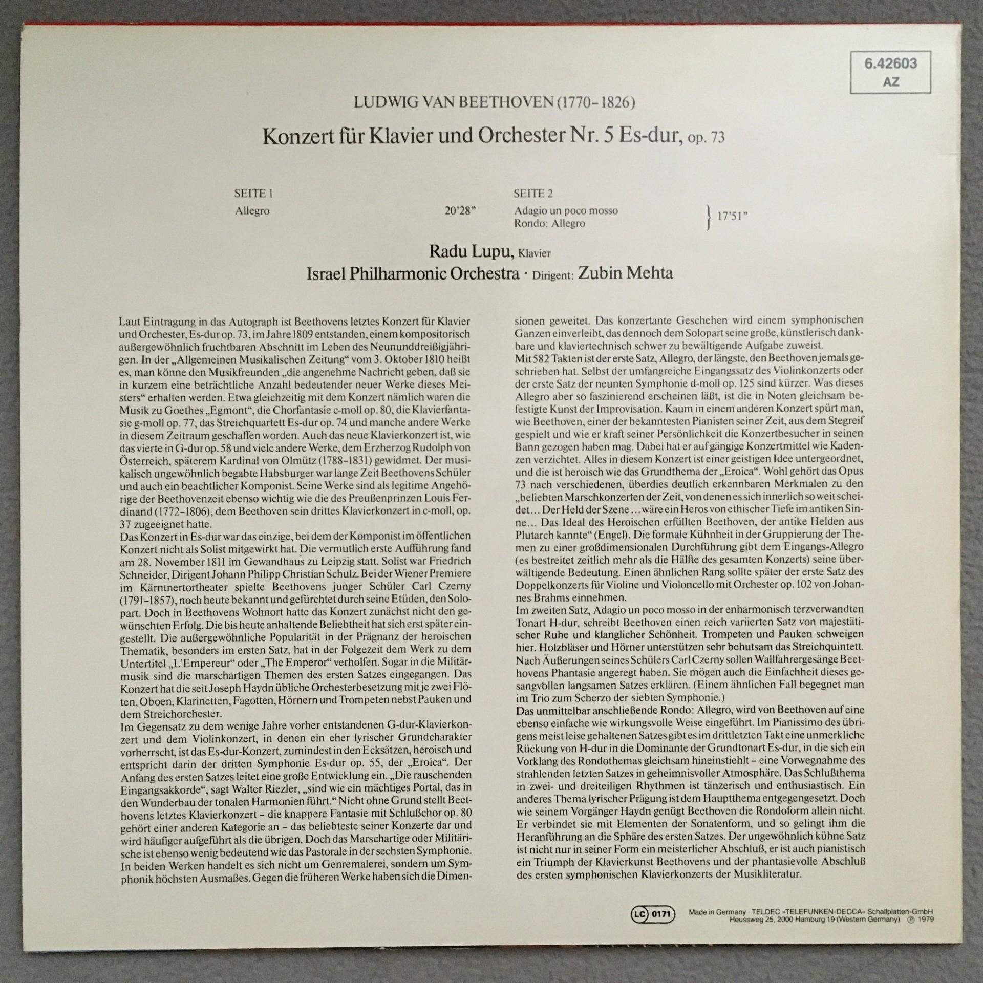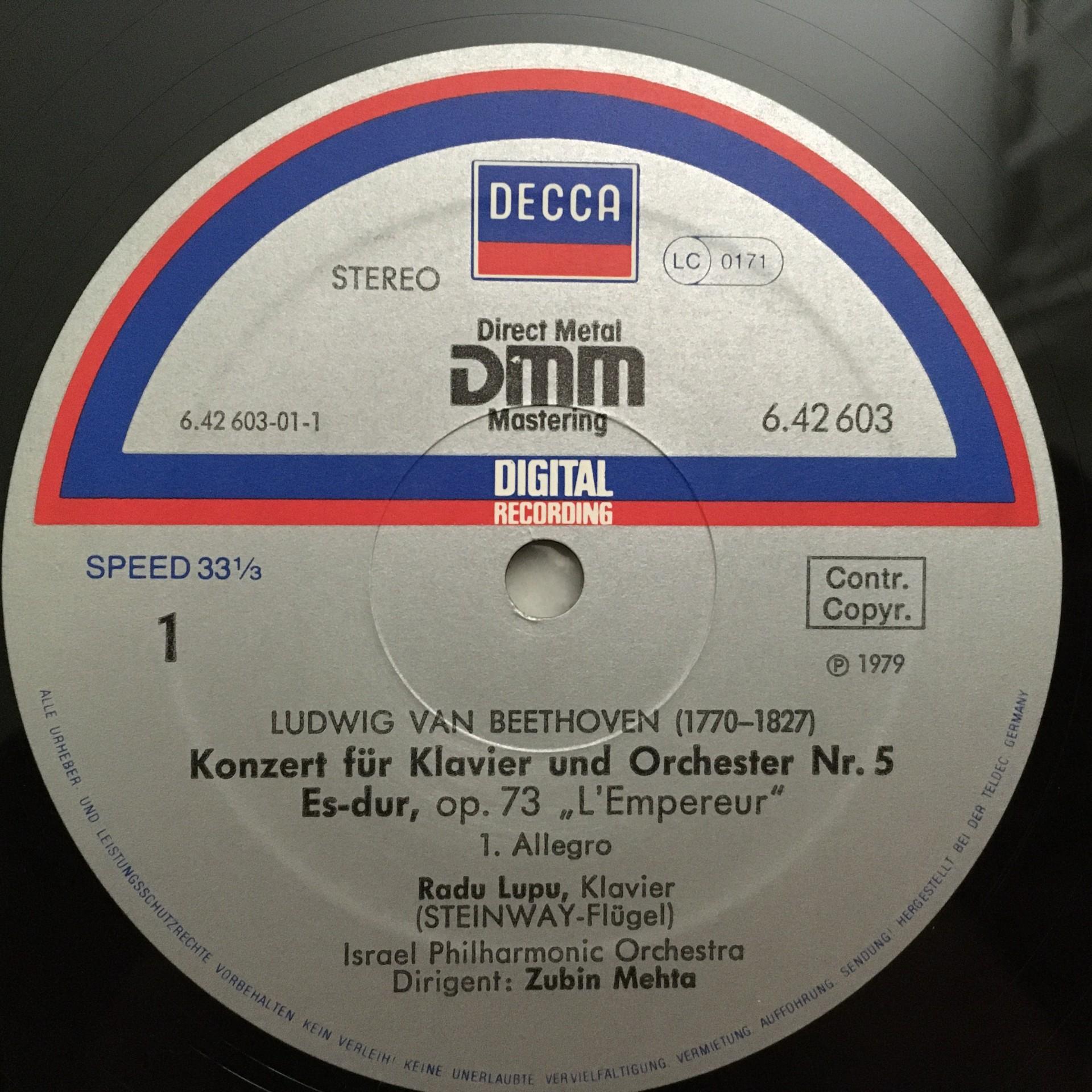 Q663 Beethoven Piano Concerto No.5 Lupu Mehta DECCA 6.42603 AZ Digital Stereo