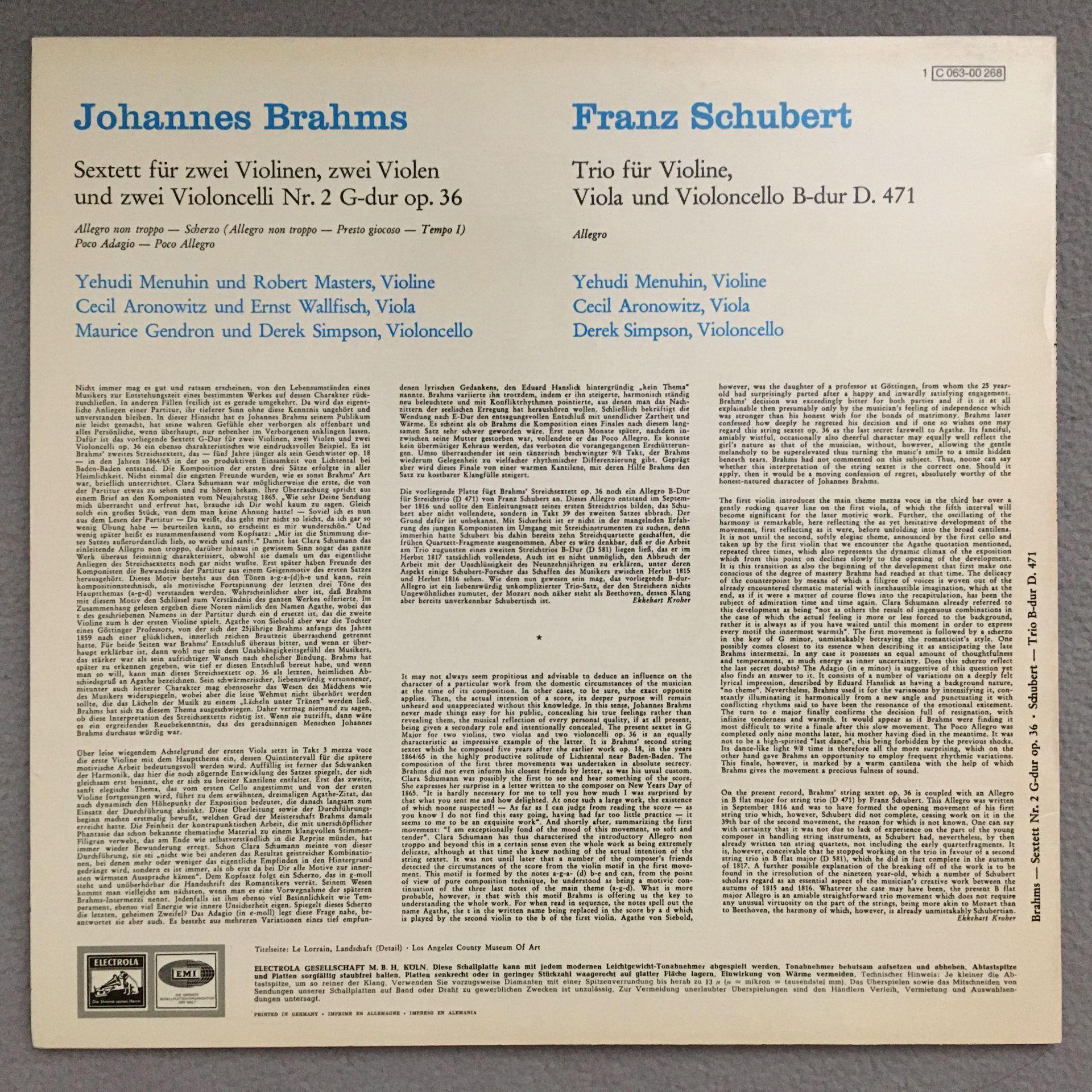Q665 Brahms Sextet Schubert Trio Menuhin Gendron EMI 1 C 063-00 268 Stereo