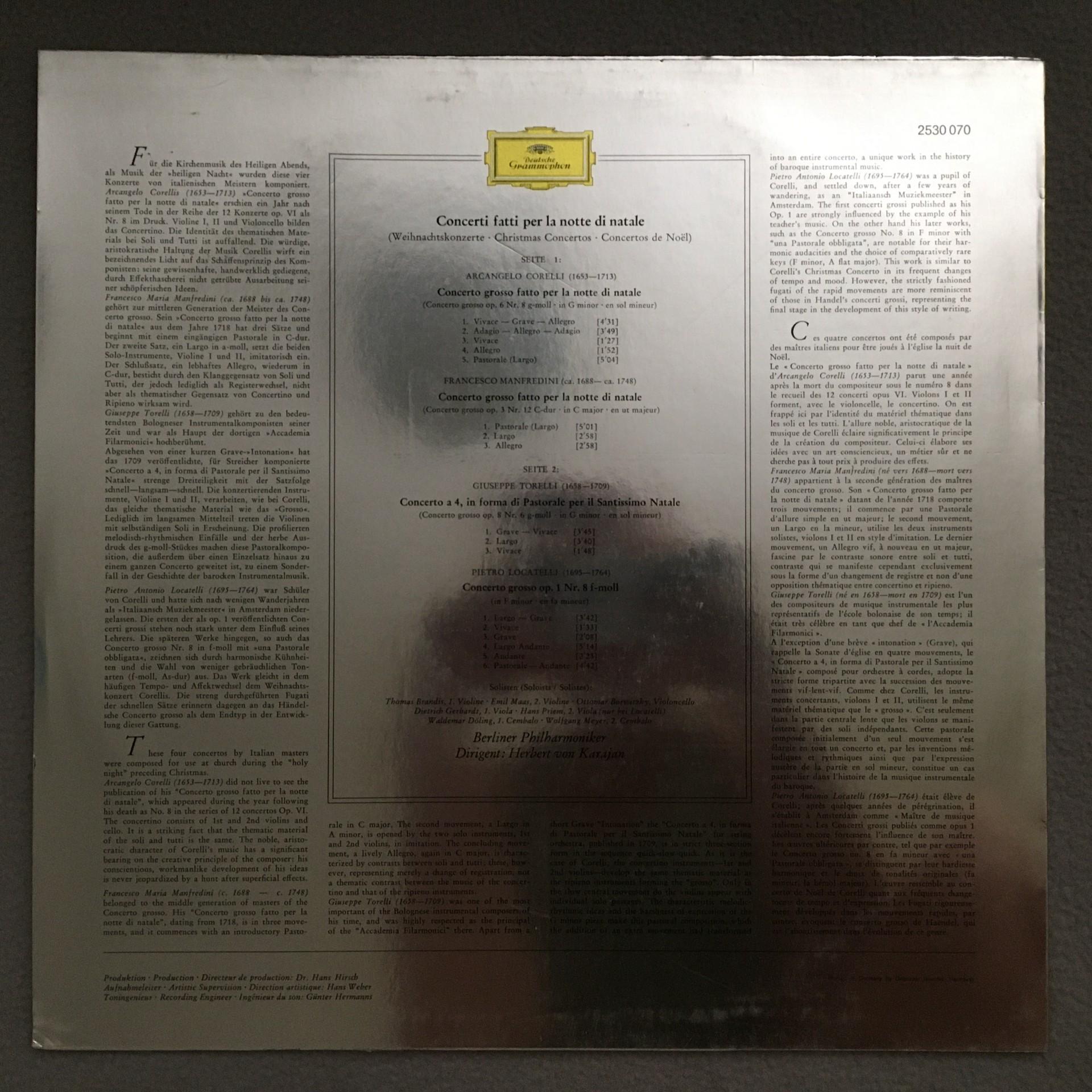 Q666 Corelli Manfredini Torelli Christmas Concertos Karajan DGG 2530 070 St