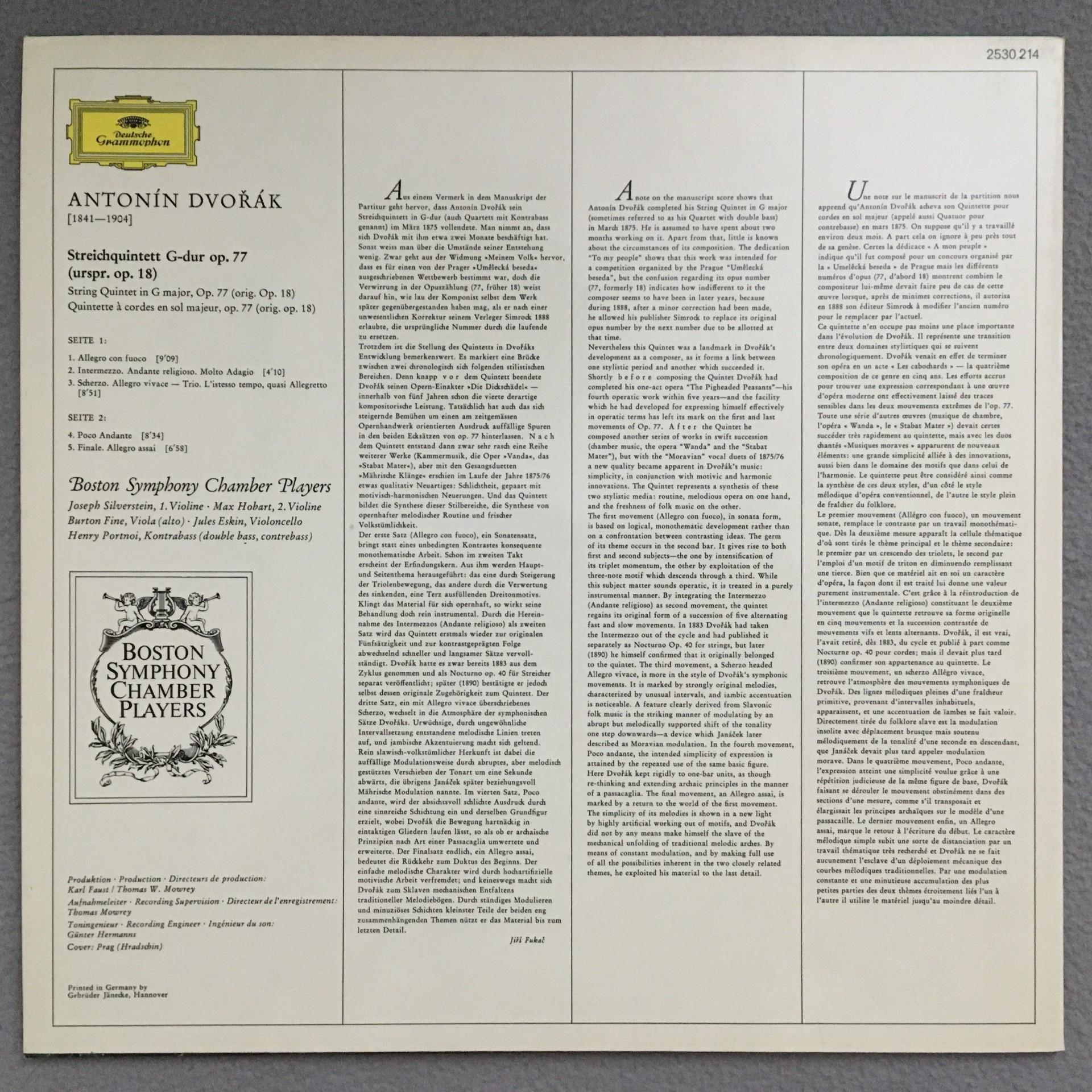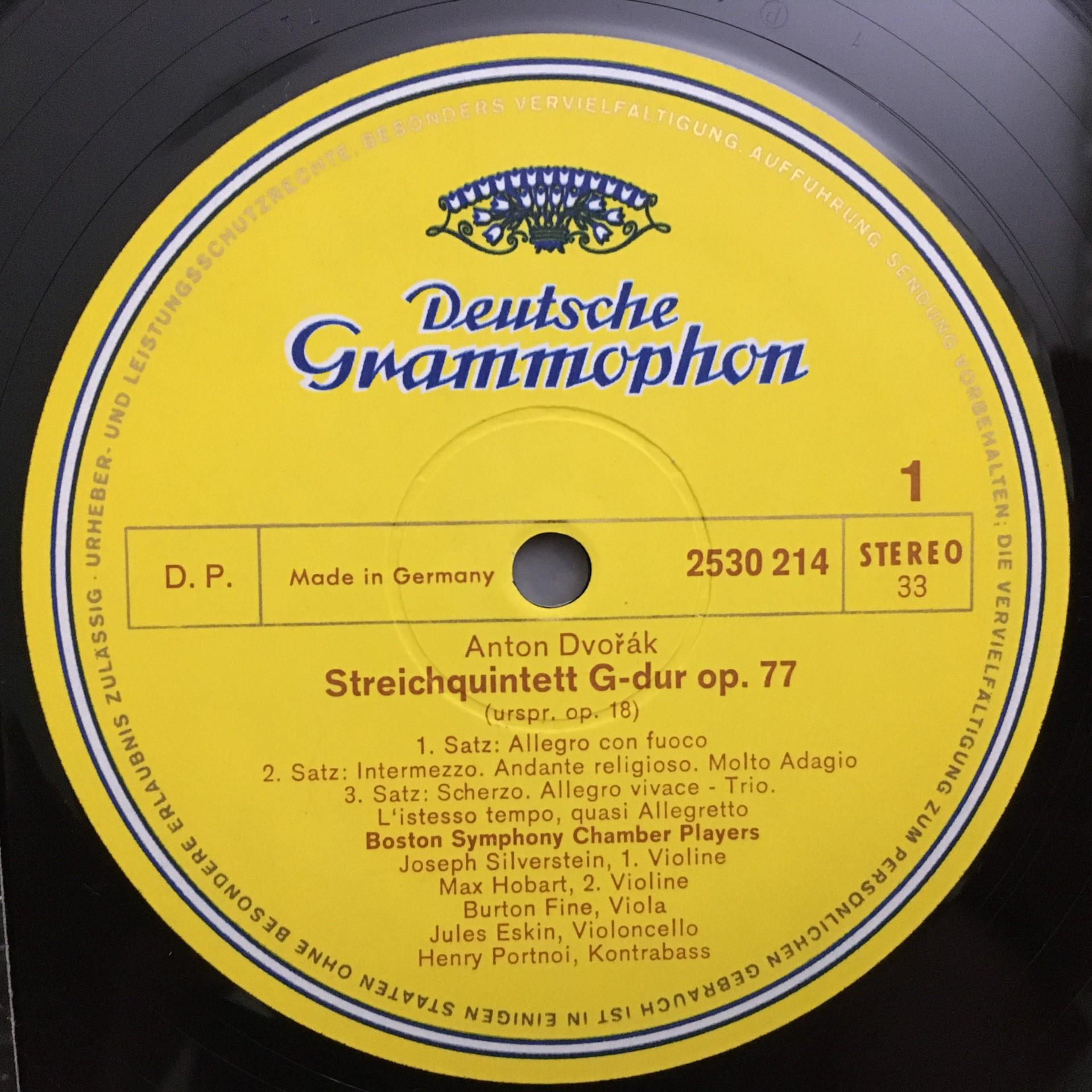 Q668 Dvorak String Quintet Boston Symphony Chamber Player DGG 2530 214 Stereo