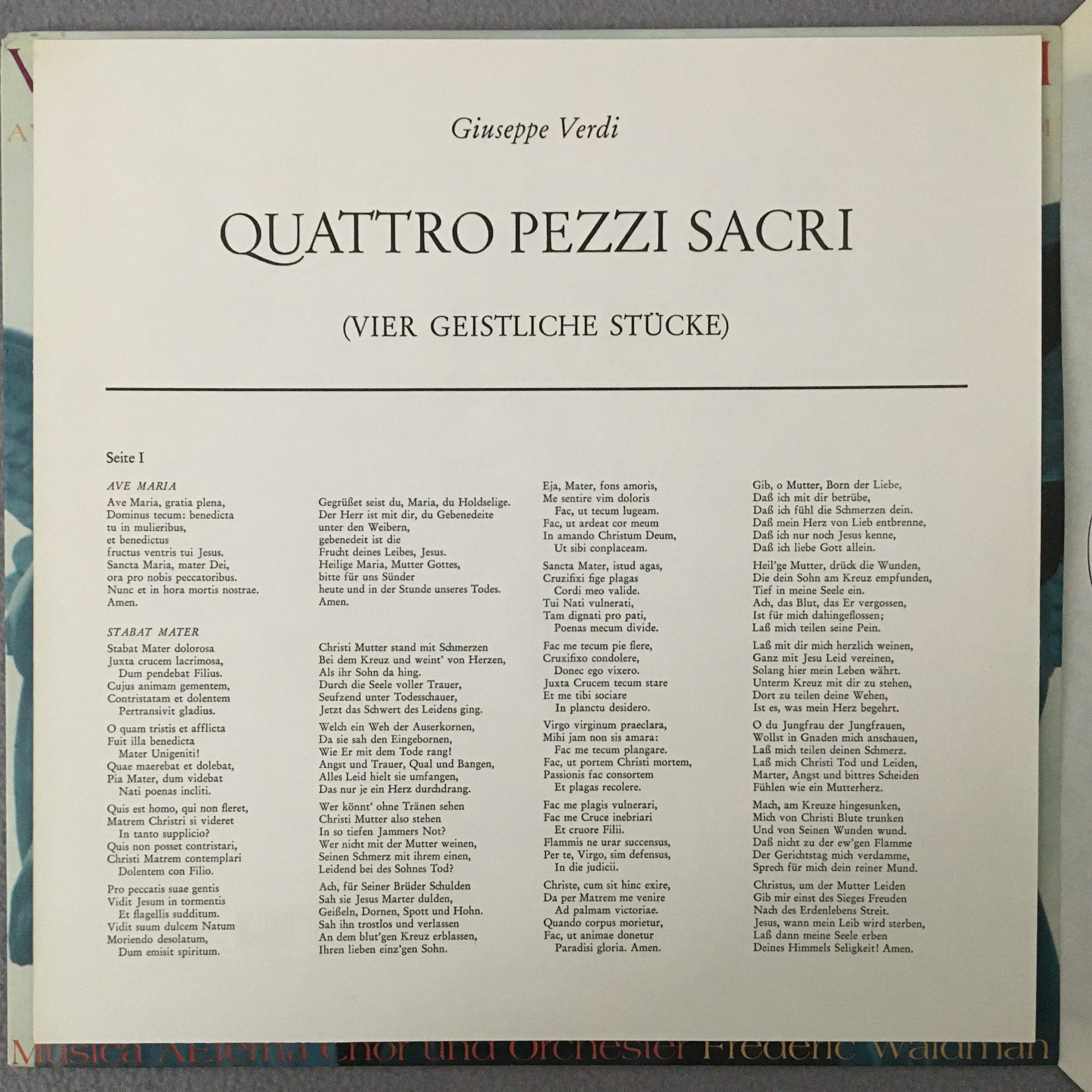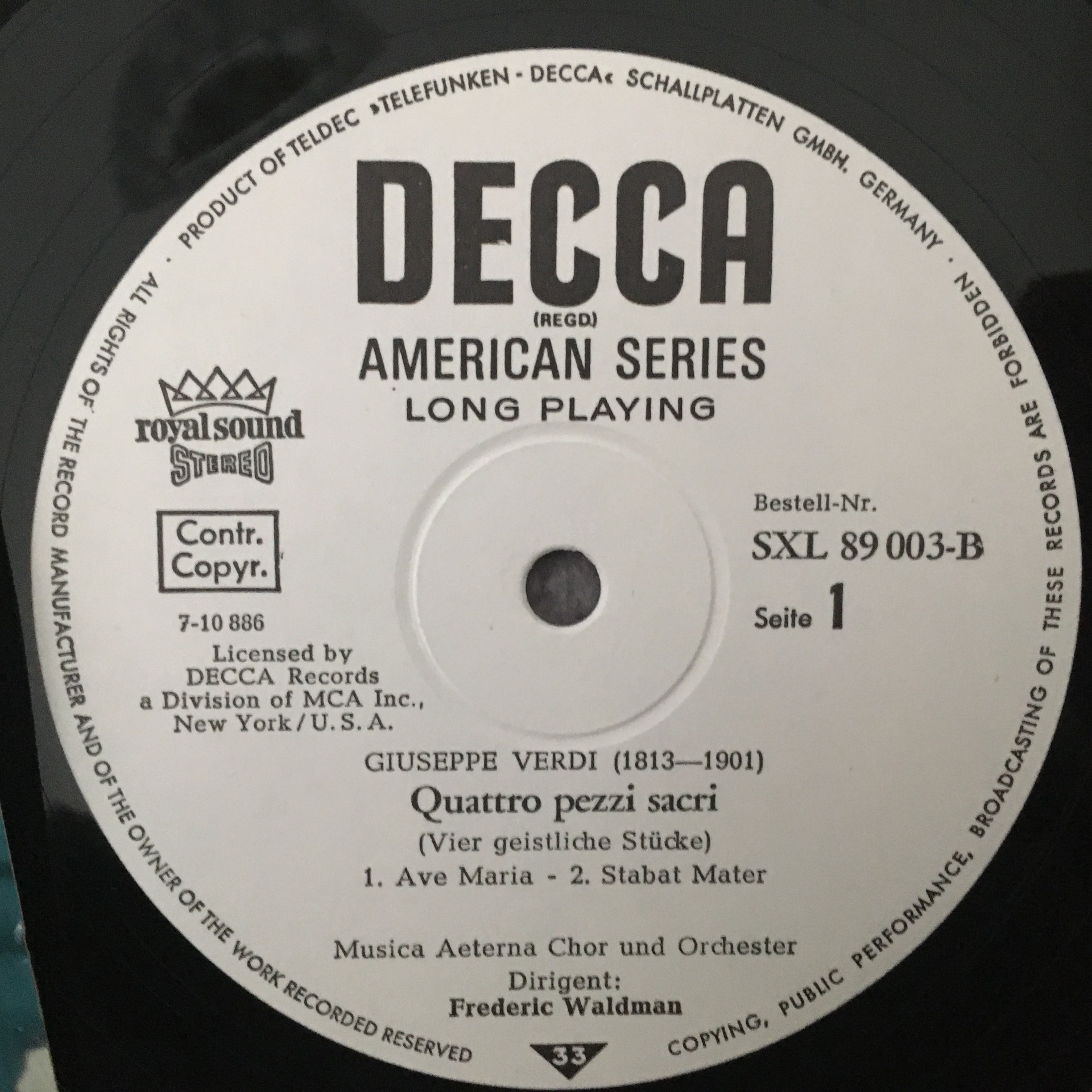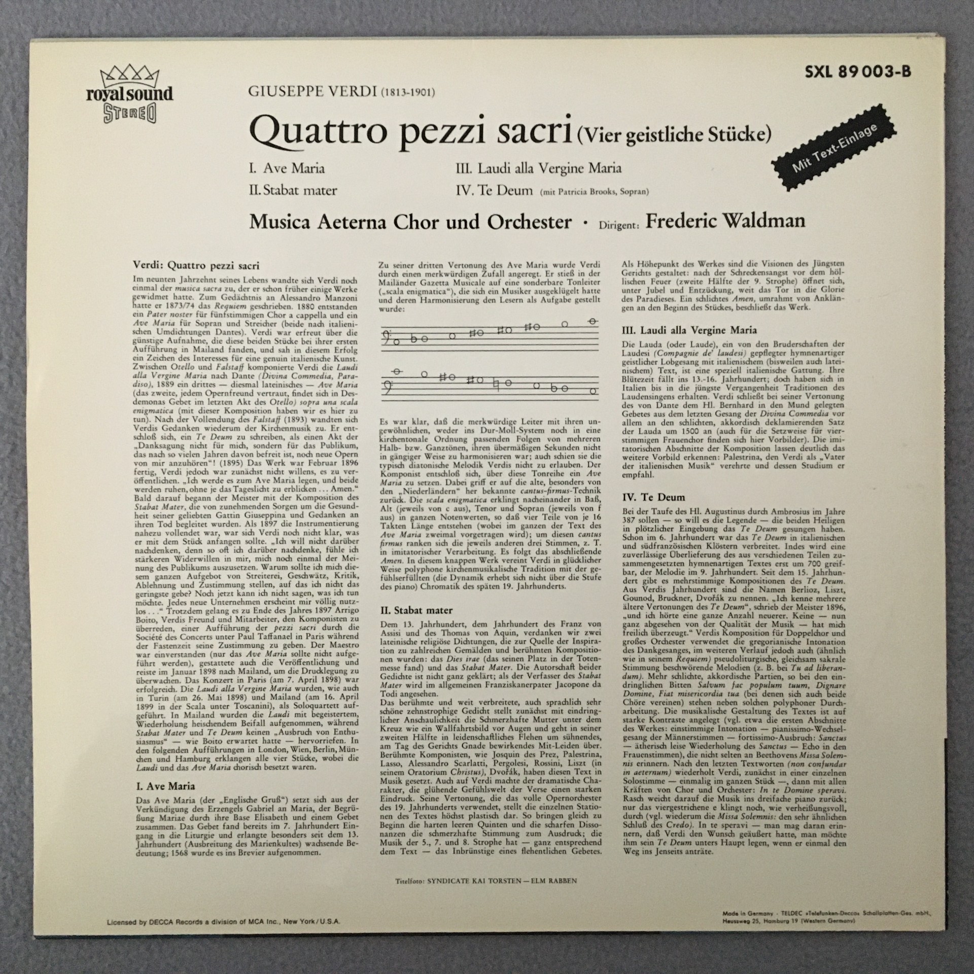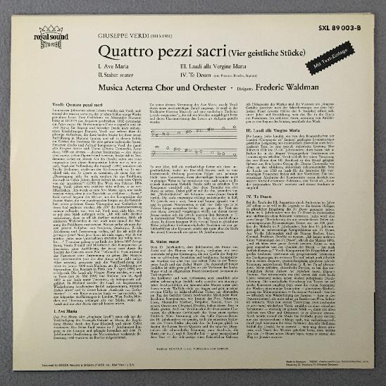 R407 Verdi 4 Sacri Pezzi Ave Maria Te Deum Waldman DECCA SXL 89 003-B Stereo