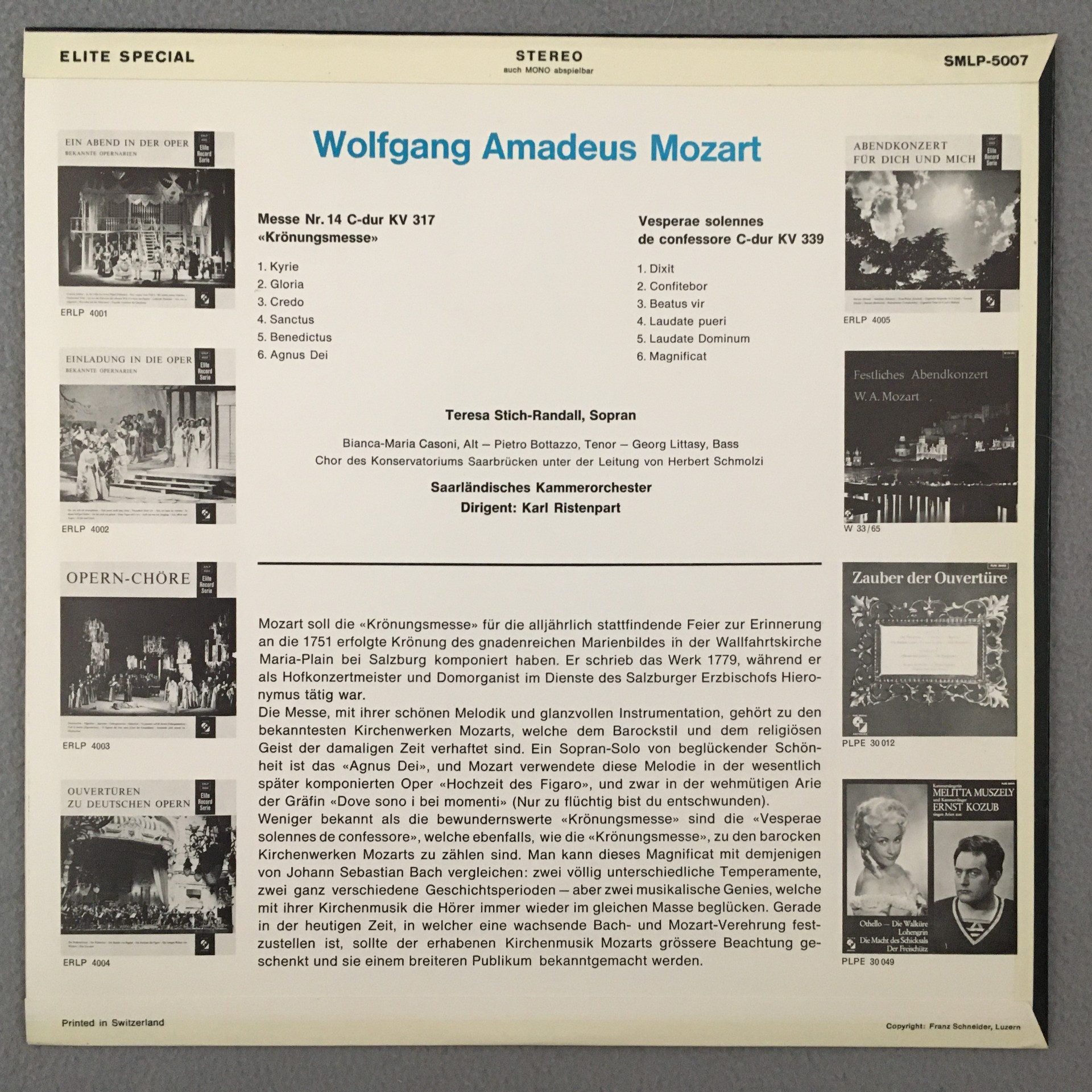 R418 Mozart Mass Stich-Randall Ristenpart Elite Special SMLP-5007 Stereo