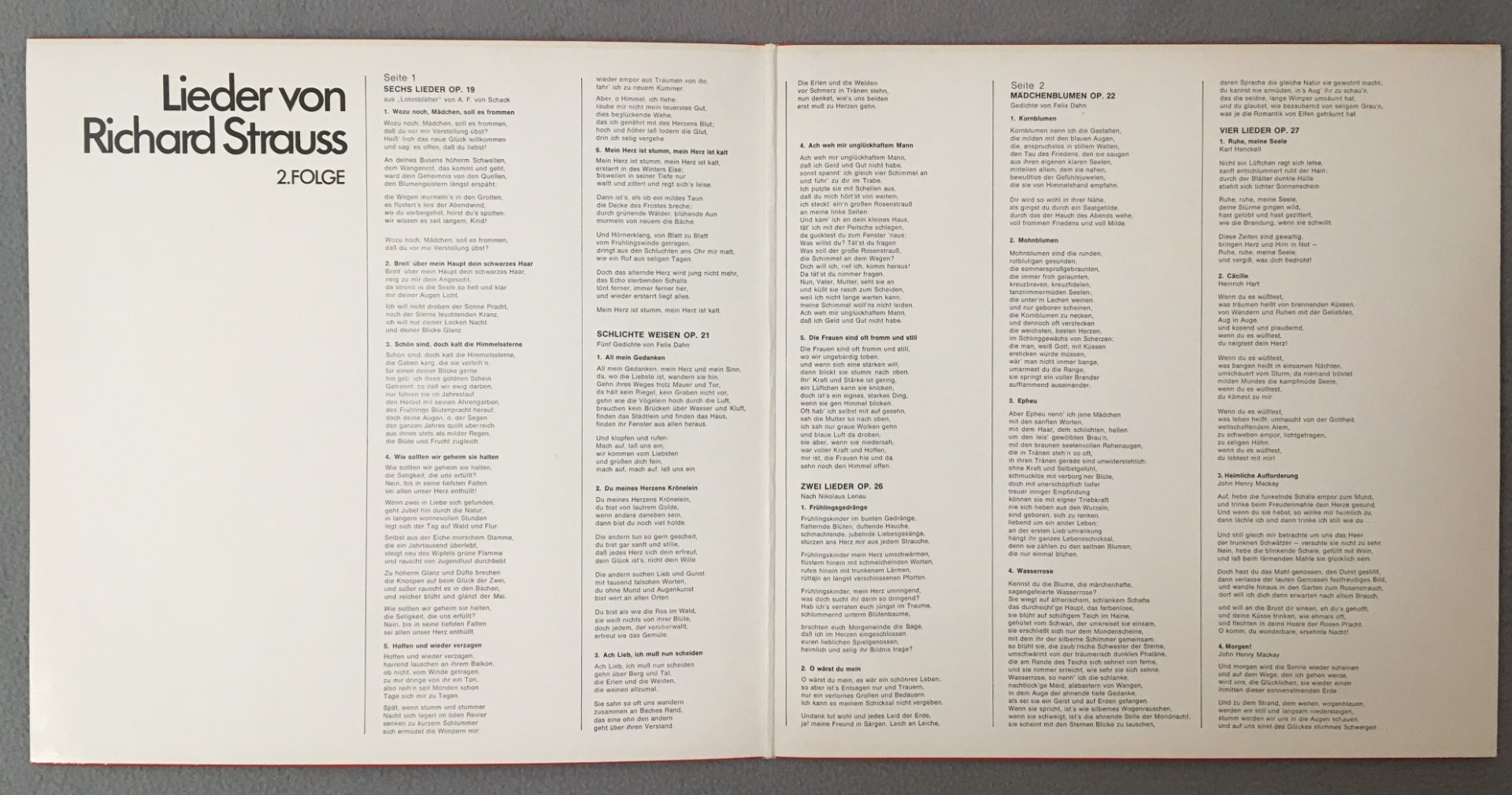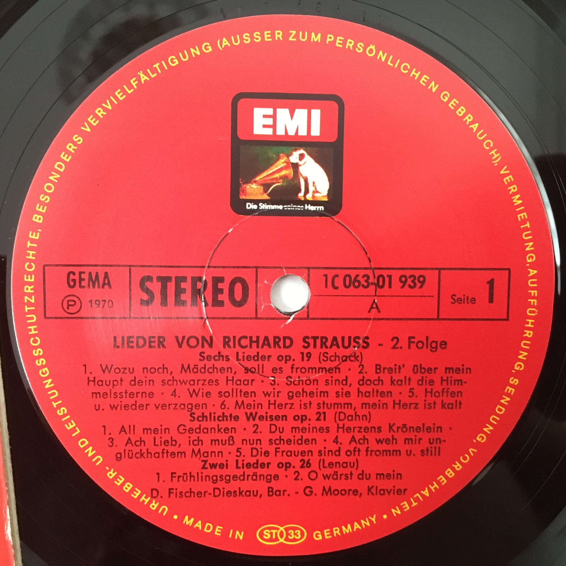 R423 R. Strauss Songs Vol.2 Fischer-Dieskau Moore Piano EMI 1C 063-01 939 Stereo