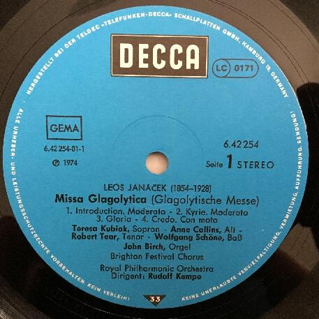 V037 Janacek Missa Glagolytica Kubiak Collins Tear Kempe DECCA 6.42254 AW Stereo
