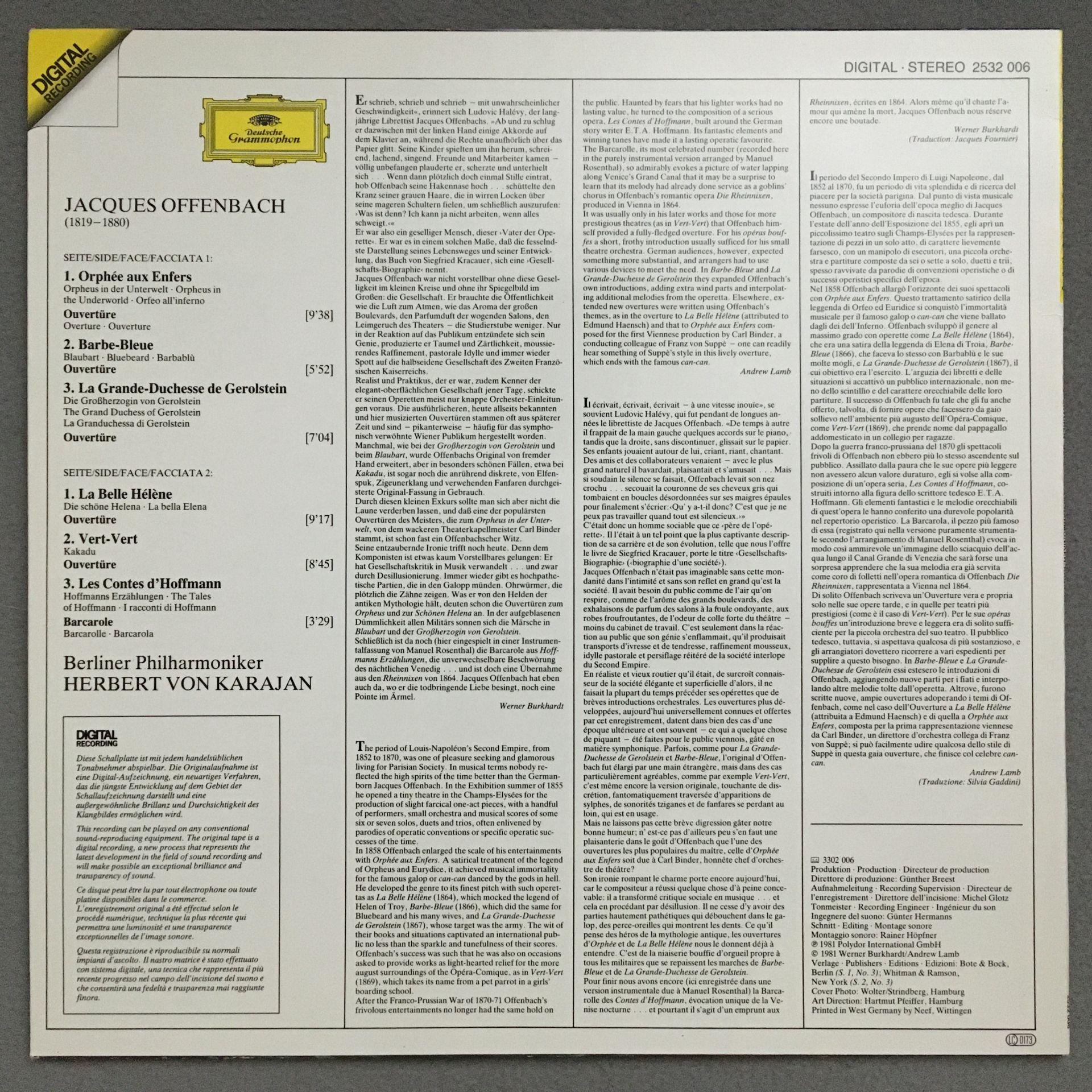 V041 Offenbach Overtures Karajan DGG 2532 006 Digital Stereo