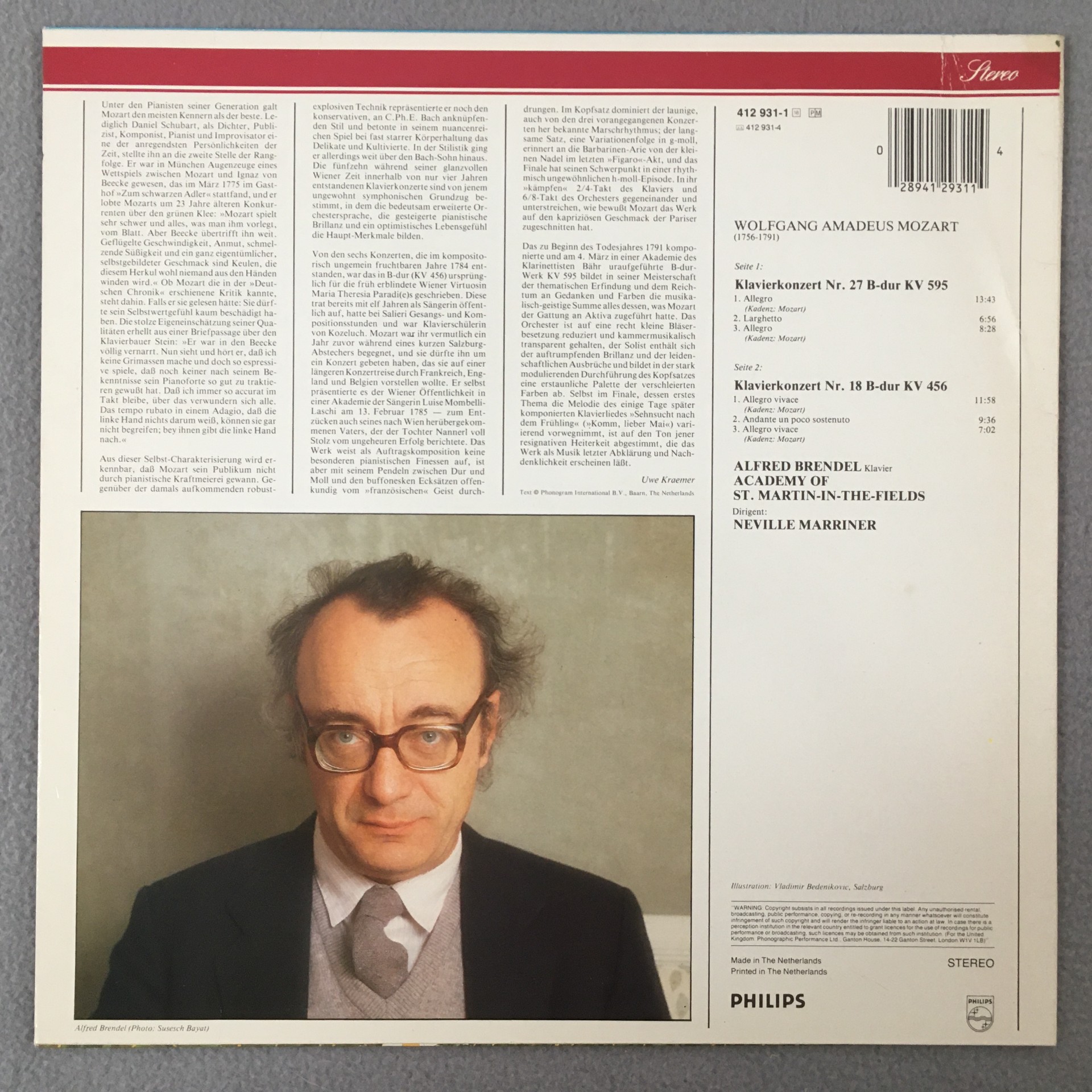 R430 Mozart Piano Concertos Brendel Marriner Philips 412 931-1 Stereo