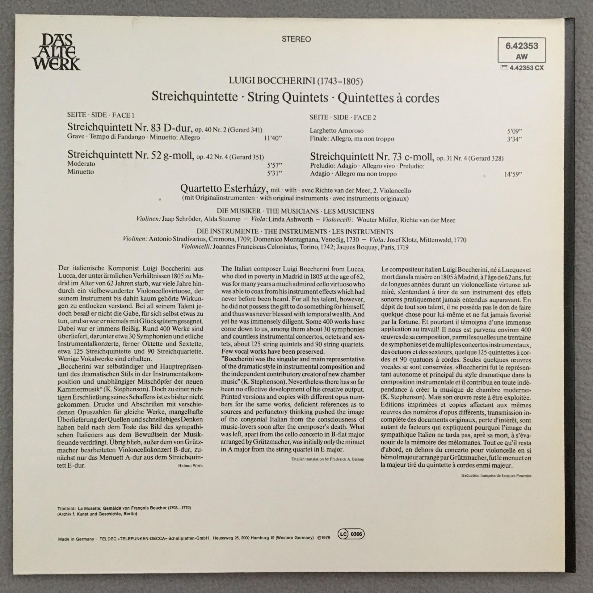 Q677 Haydn String Quartets Quartetto Esterhazy Telefunken 6.42354 AW Stereo
