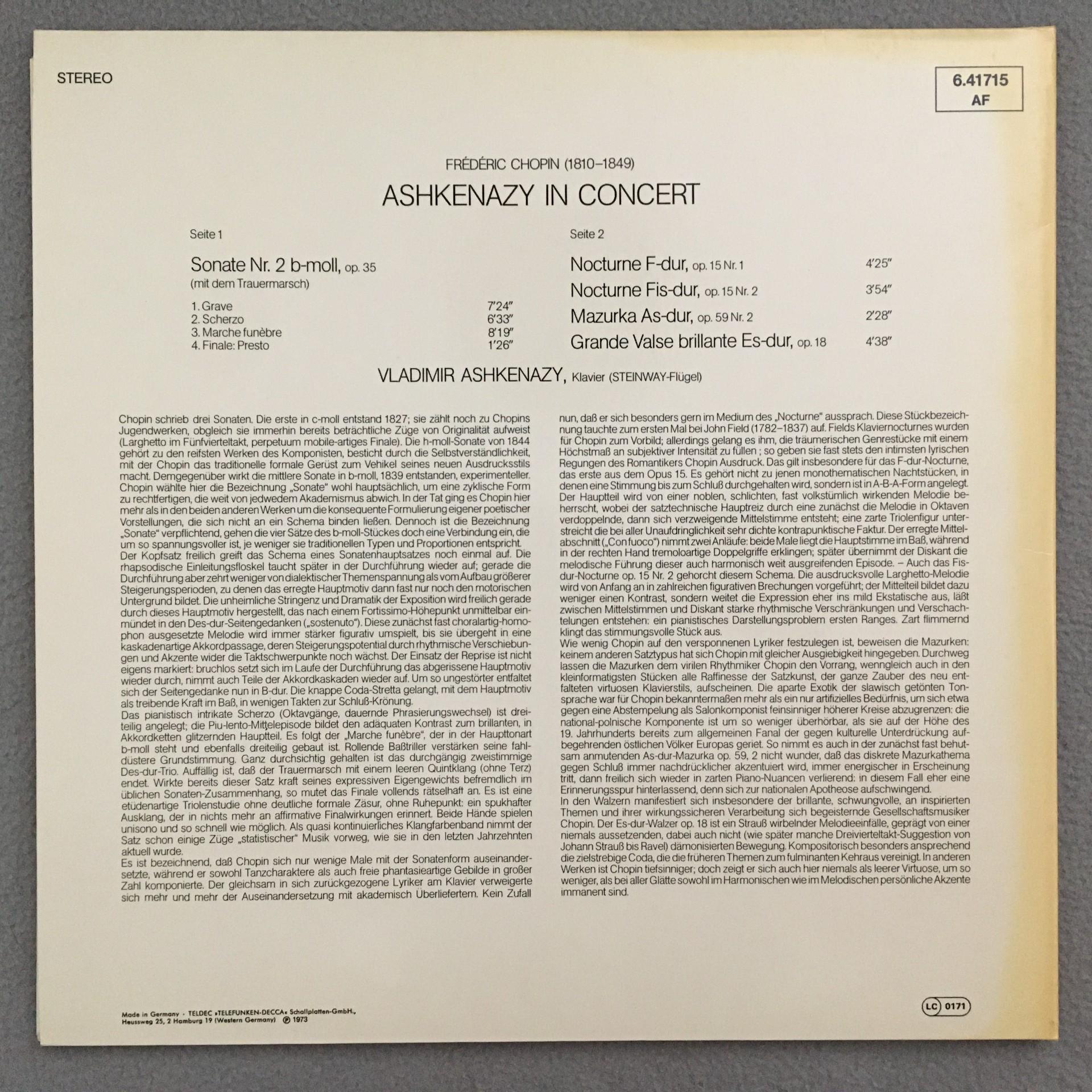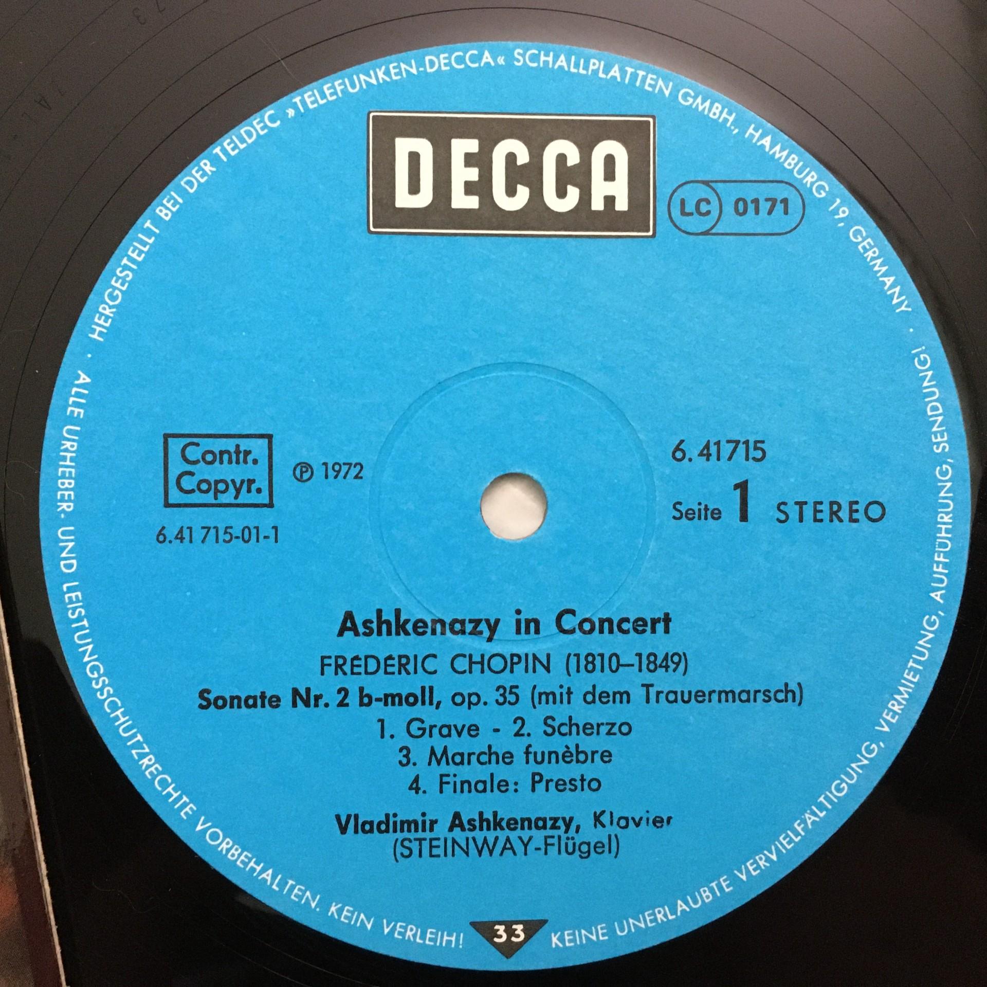 Q681 Chopin Ashkenazy in Concert Sonata Nocturne DECCA 6.41715 AH Digital Ster