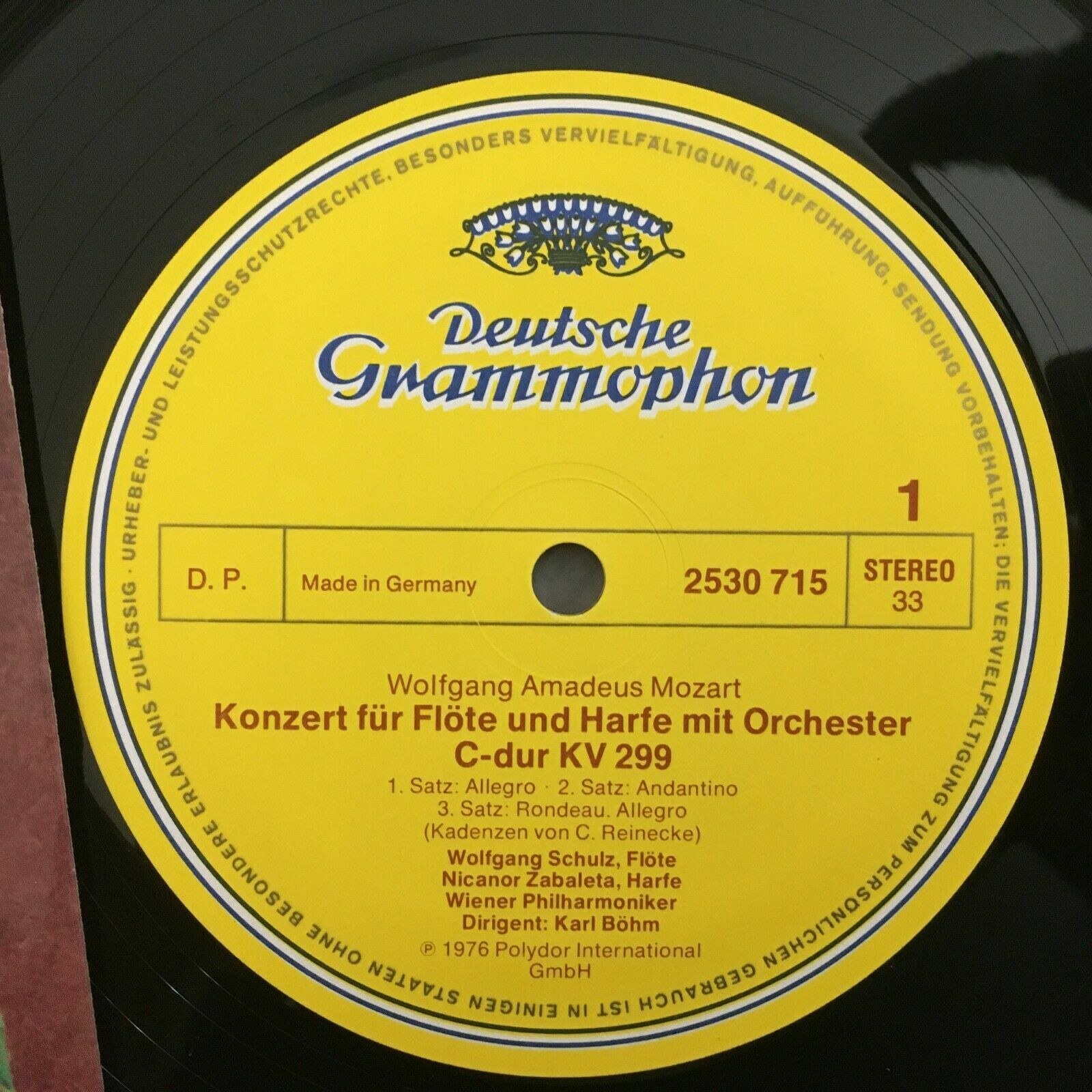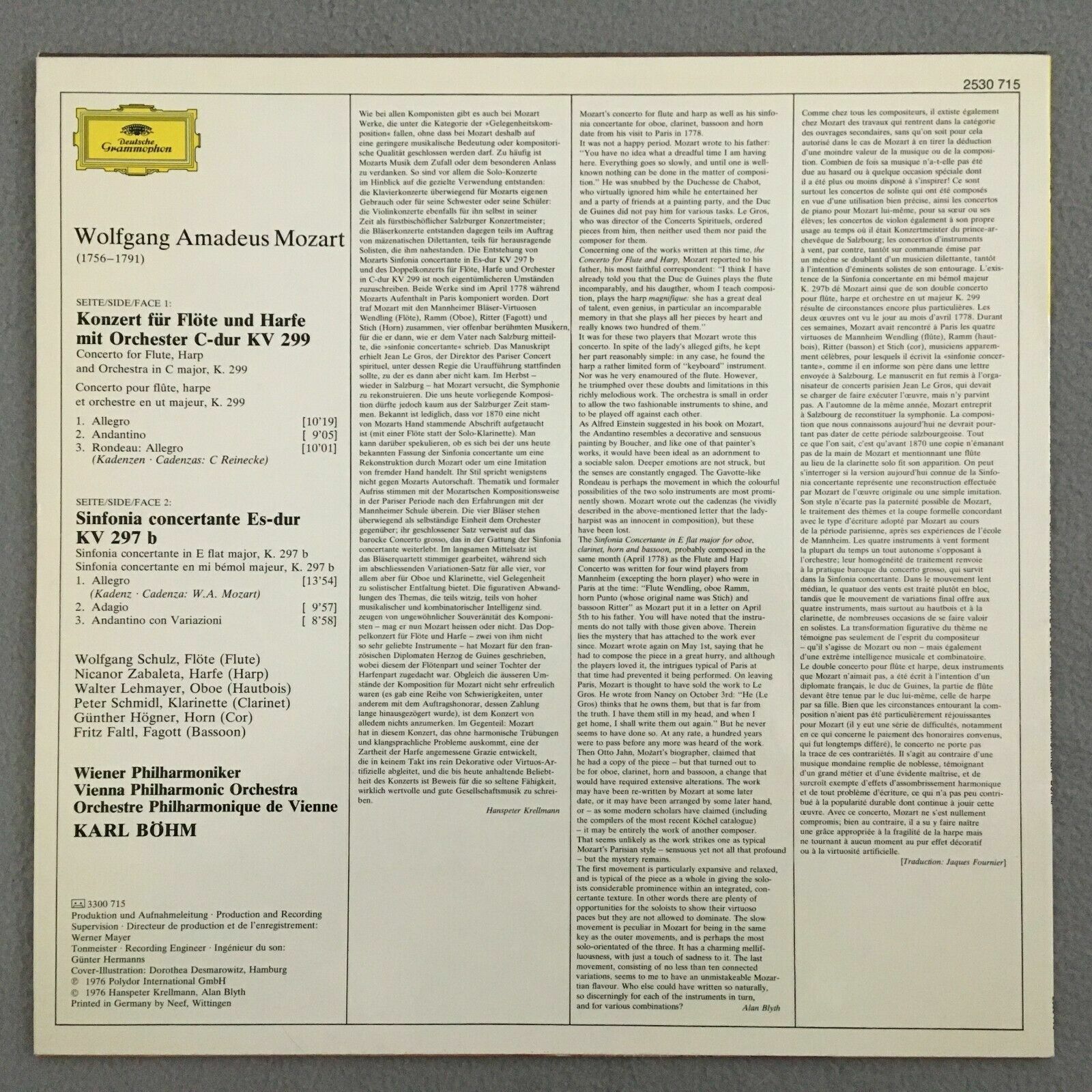 J283 Mozart Flute & Harp Concerto Zabaleta Schulz Bohm VPO DGG 2530 715 Stereo