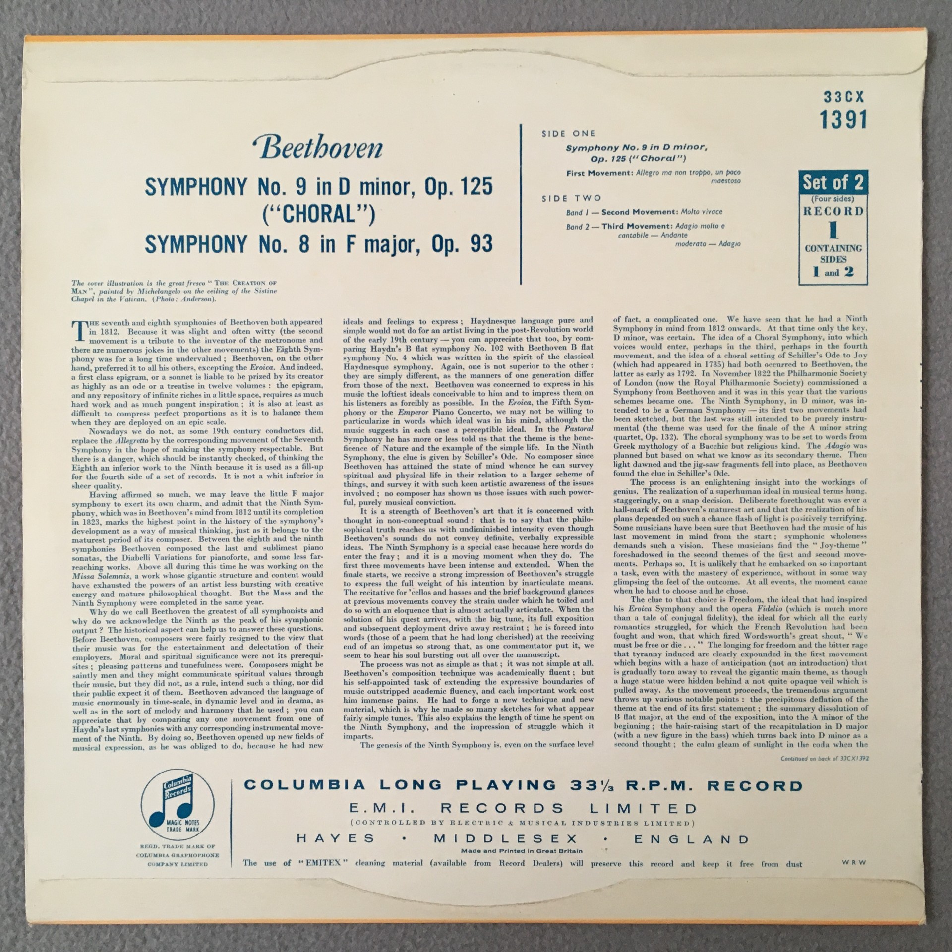 R453 Beethoven Choral Symphony Schwarzkopf Karajan 2LP Columbia 33CX 1391/92