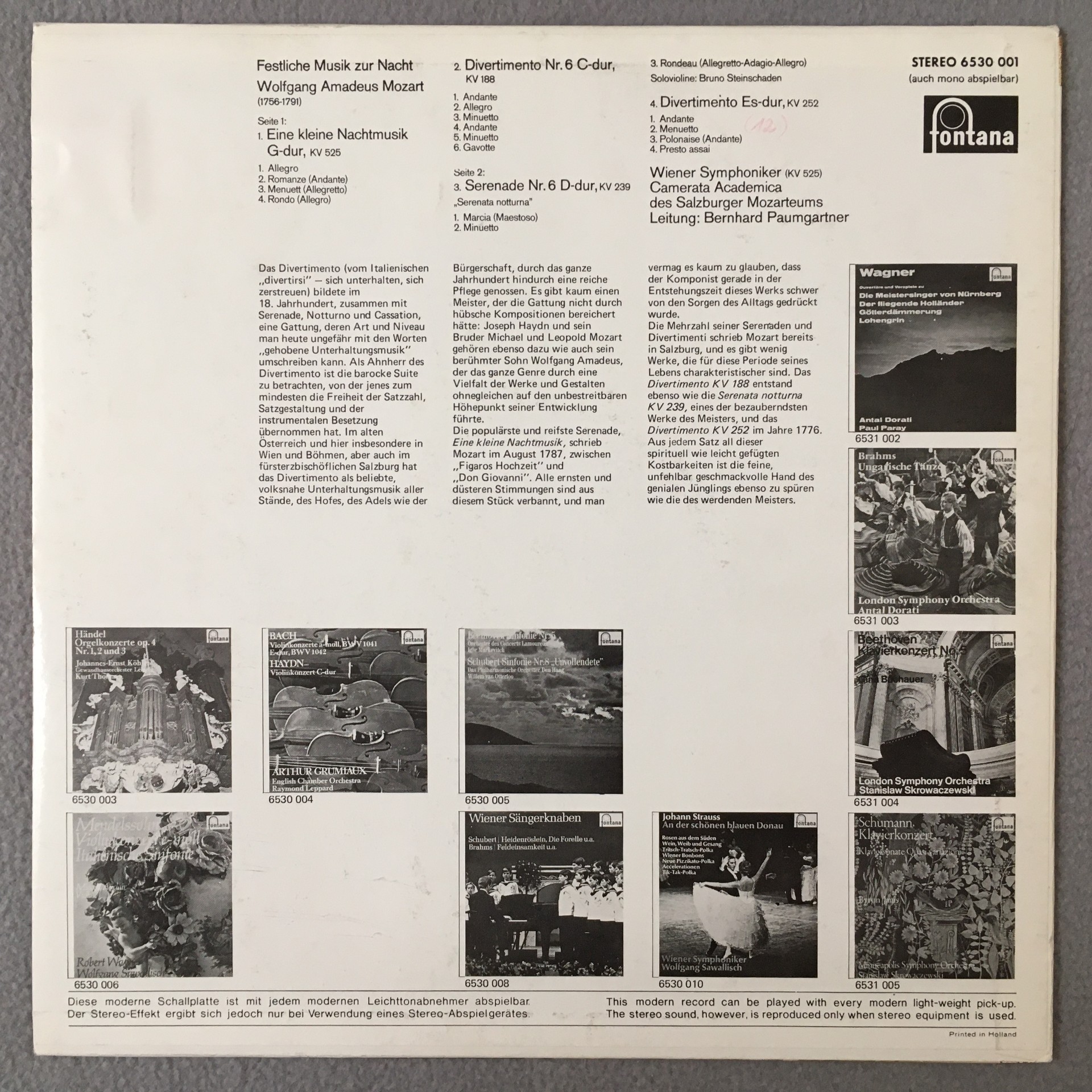 R454 Mozart Little Night Music Divertimento Paumgartner VSO Fontana 6530 001 Ste