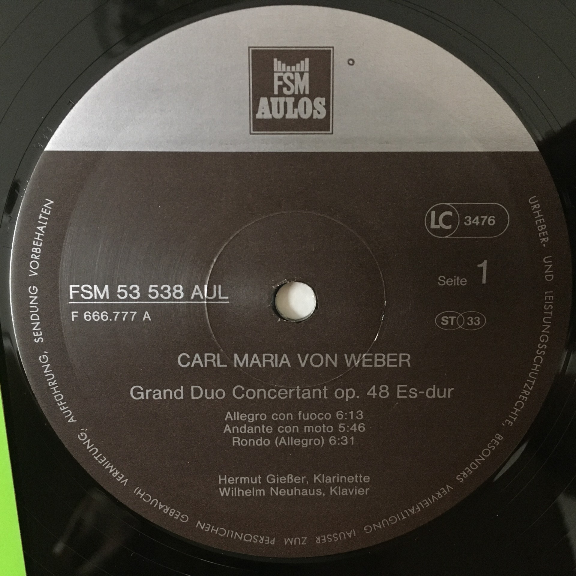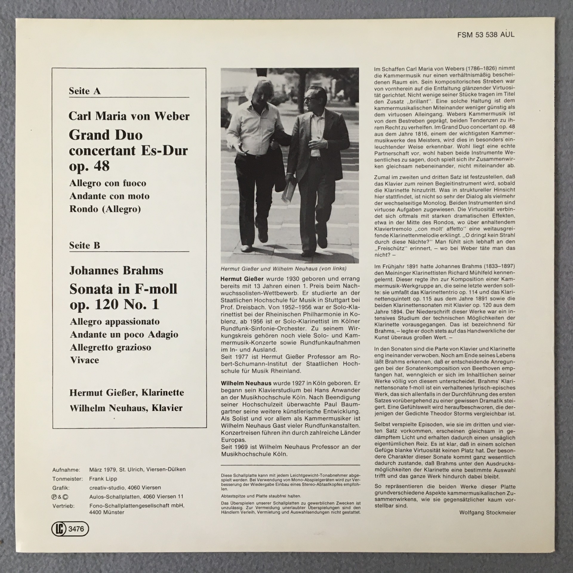 R455 Weber Concertant Brahms Sonata Giesser Neuhaus FSM 53 538 AUL Stereo