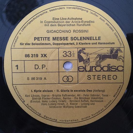 C508 Rossini Petite Messe Fischer-Dieskau Sawallisch 2LP Eurodisc 86 321 XGK St