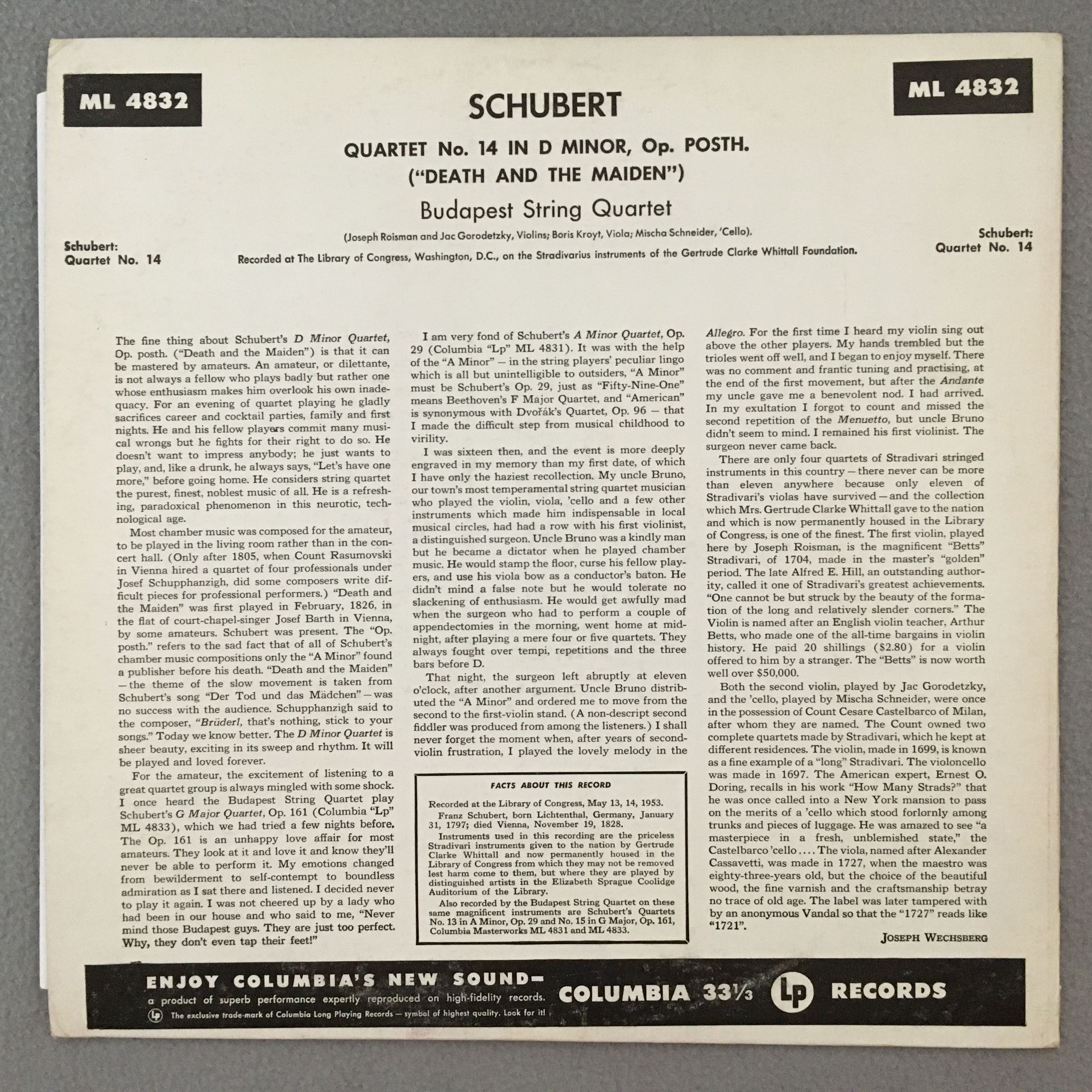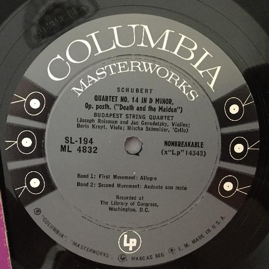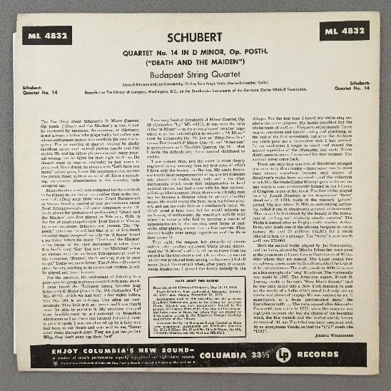 R464 Schubert Quartet No.14 Budapest String Quartet Columbia 6-Eye ML 4832