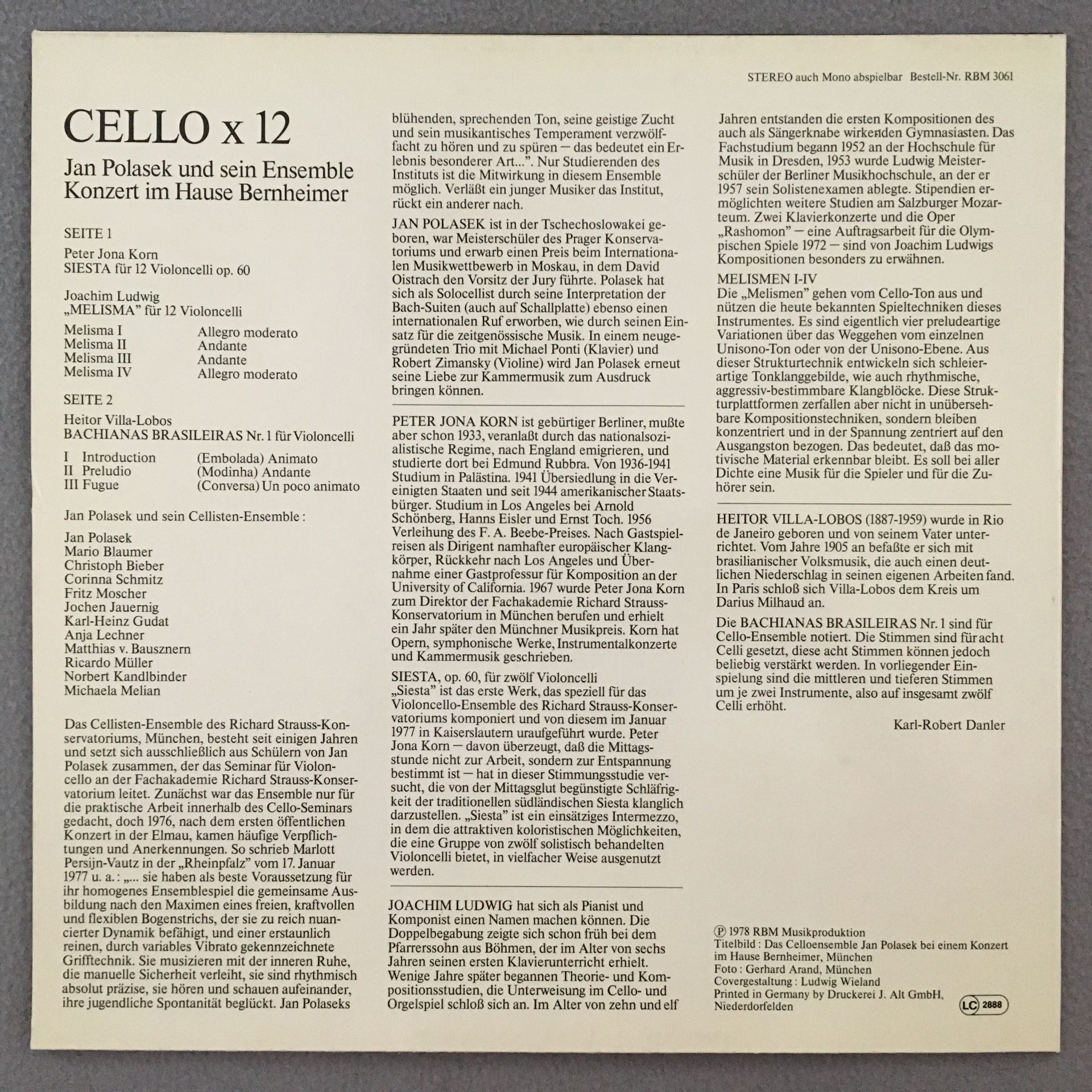 R466 Cello x 12 Bernheimer Polasek & Ensemble RBM 3061 Stereo