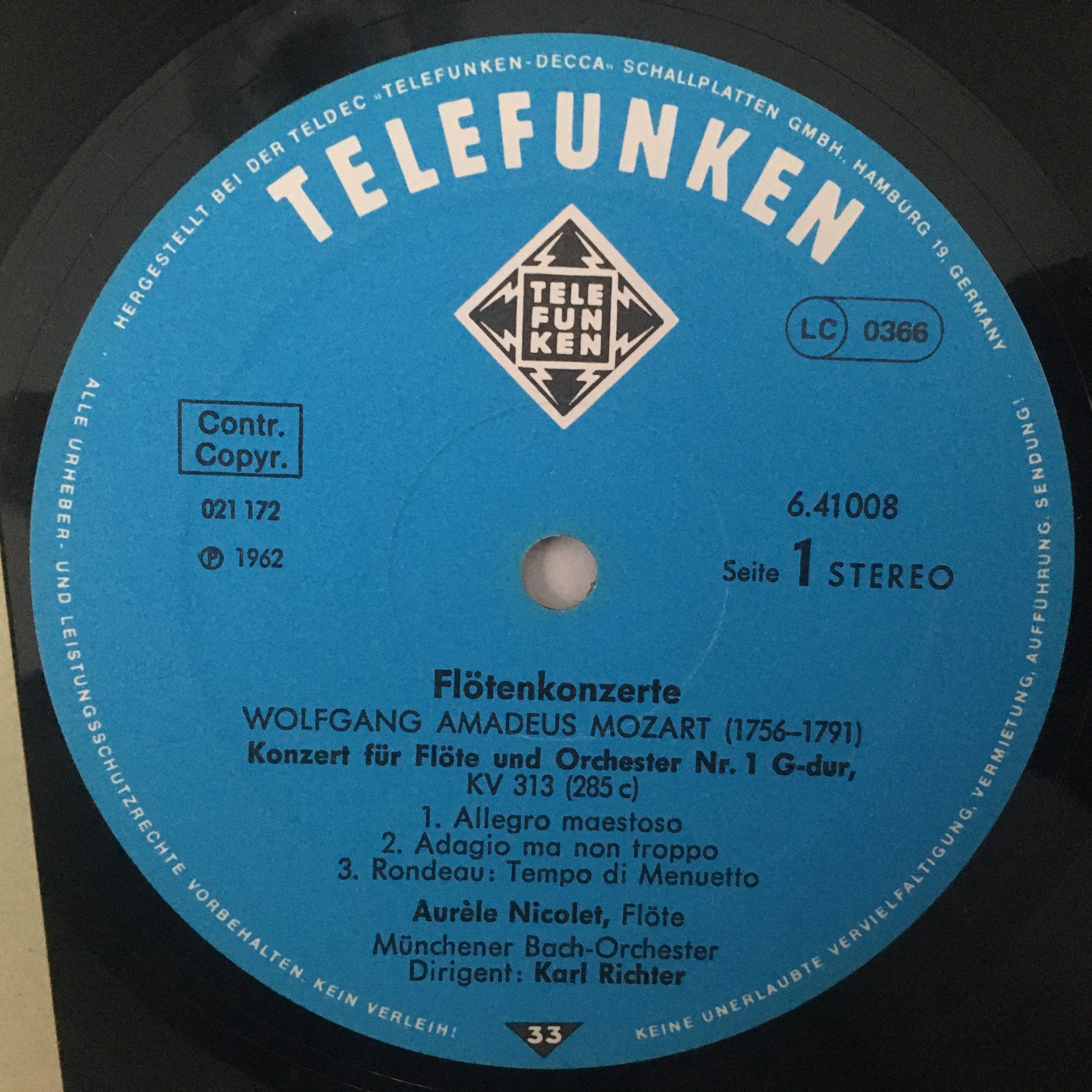 R469 Mozart Haydn Flute Concertos Nicolet Richter Telefunken 6.41008 AH Stereo