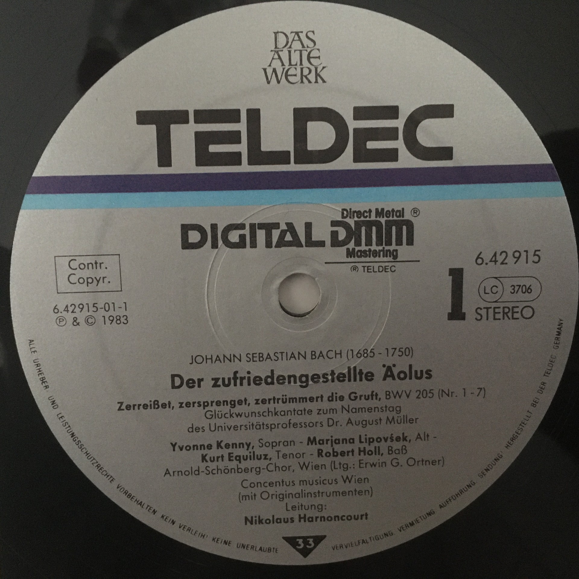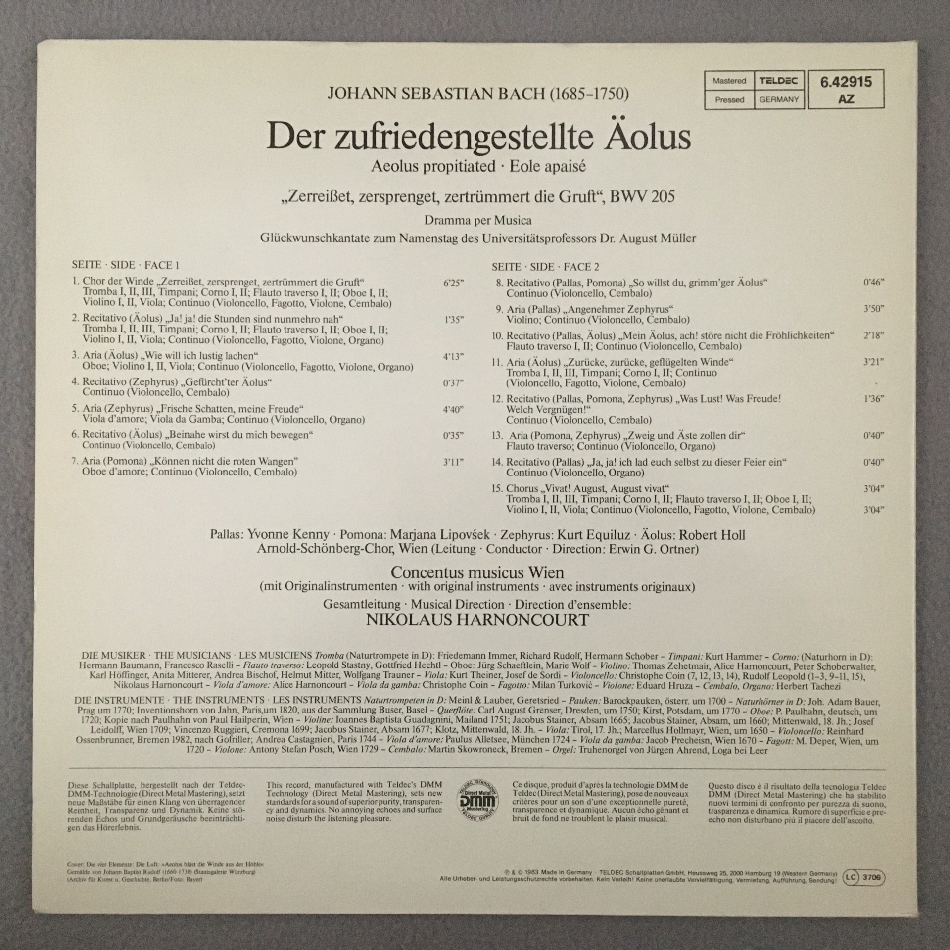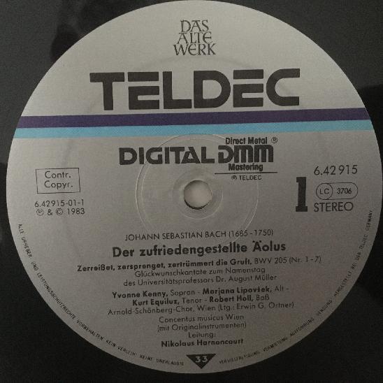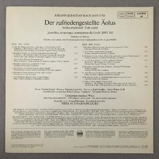 R471 Bach Aeolus Propitiated Holl Harnoncourt Teldec 6.42915 AZ Stereo