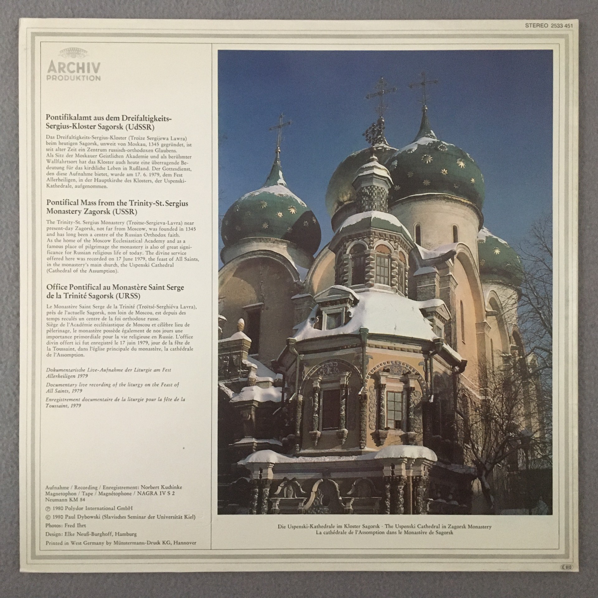 R473 Pontifical Mass from Trinity St. Sergius Zagorsk DGG Archiv 2533 451 Stereo