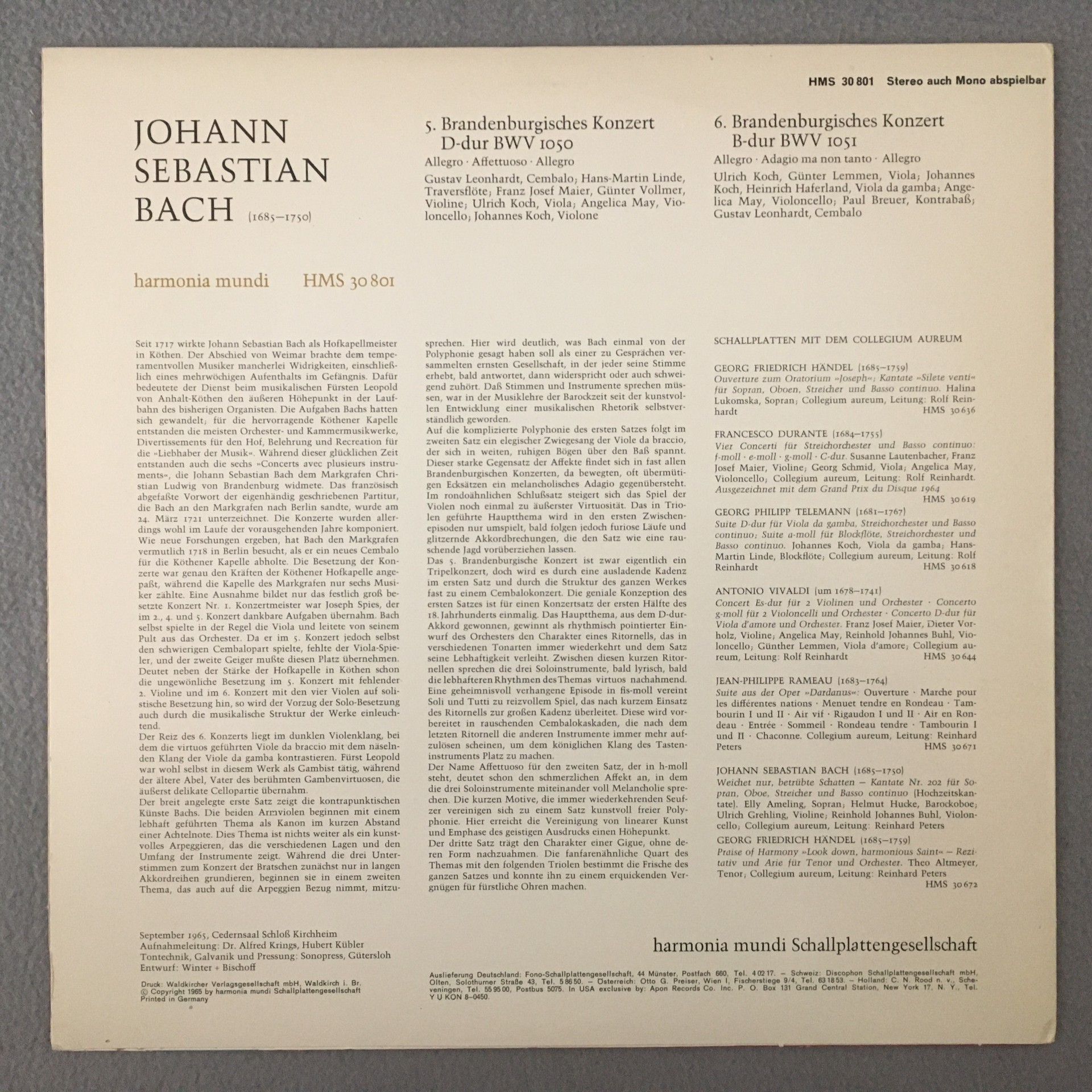 R482 Bach Brandenburg Concertos Leonhardt Koch Linde HM HMS 30 801 Stereo