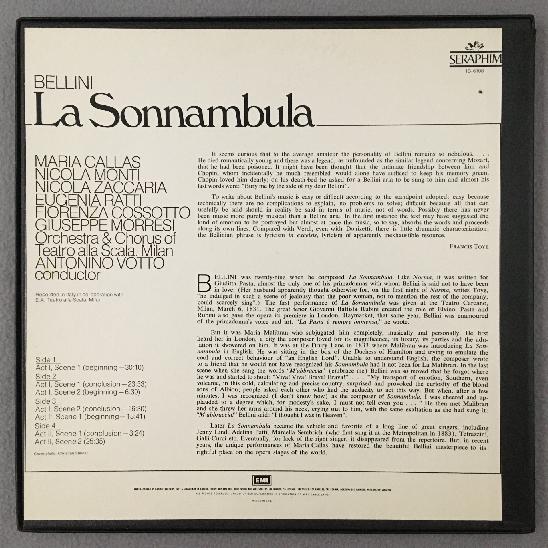 C511 Bellini La Sonnambula Callas Zaccaria Cossotto Votto 2LP Seraphim IB-6108