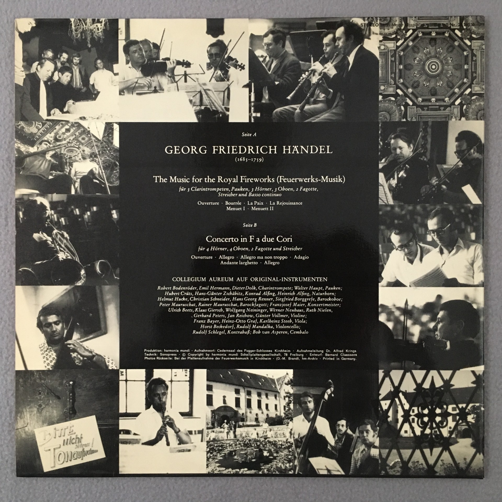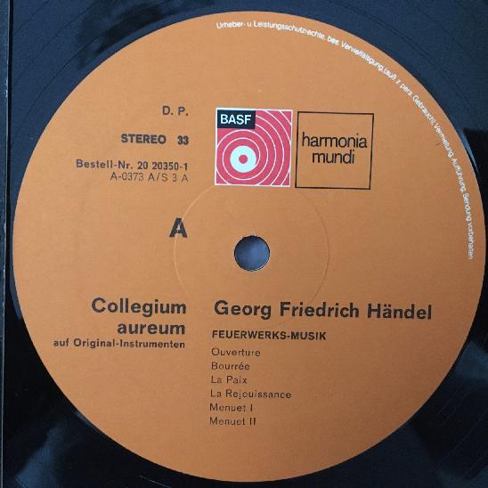 R491 Handel Fireworks Music Collegium Aureum Harmonia Mundi 20 20 350-6 Stereo