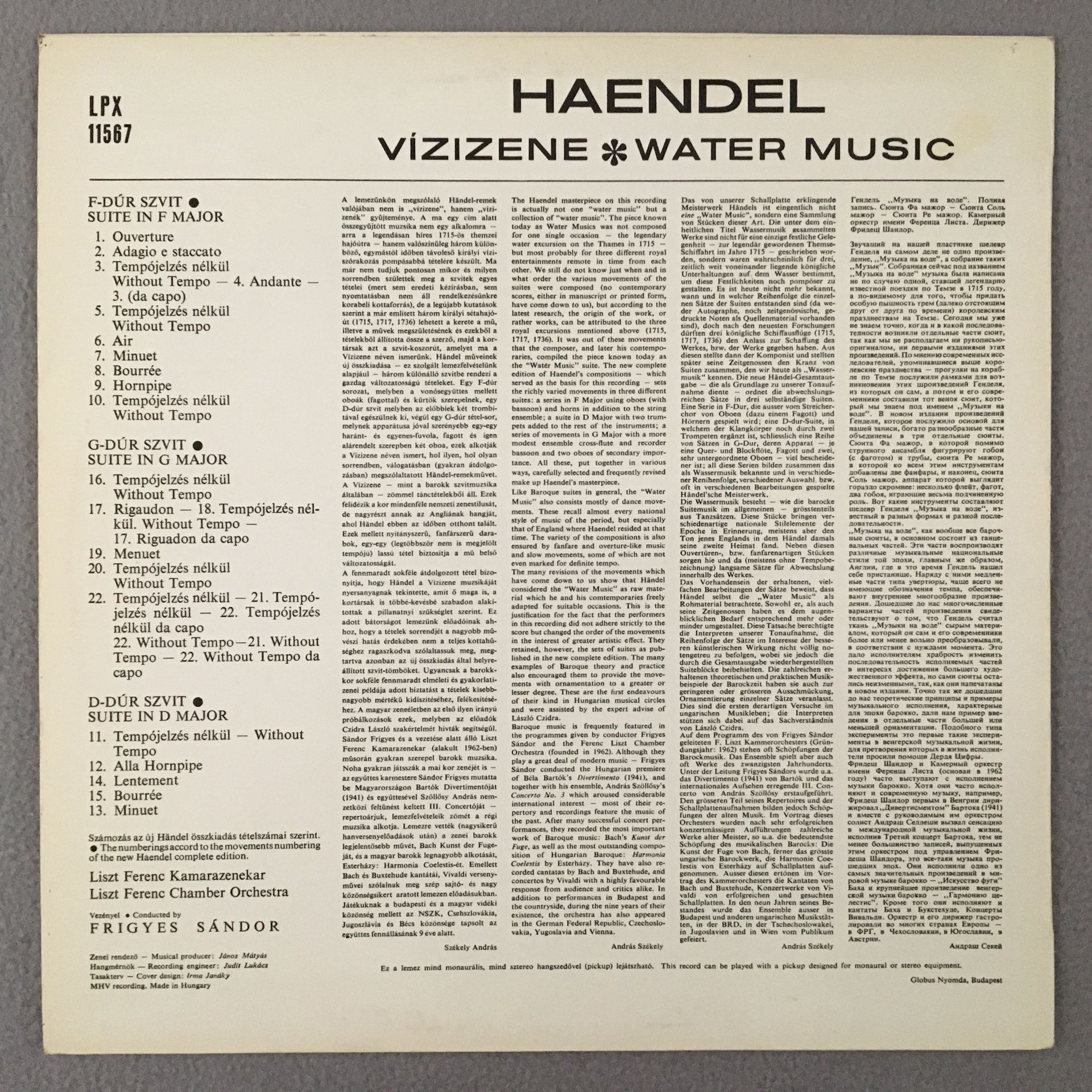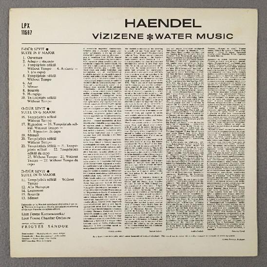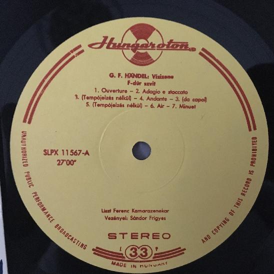 R498 Handel Water Music Sandor Hungaroton LPX 11567 Stereo