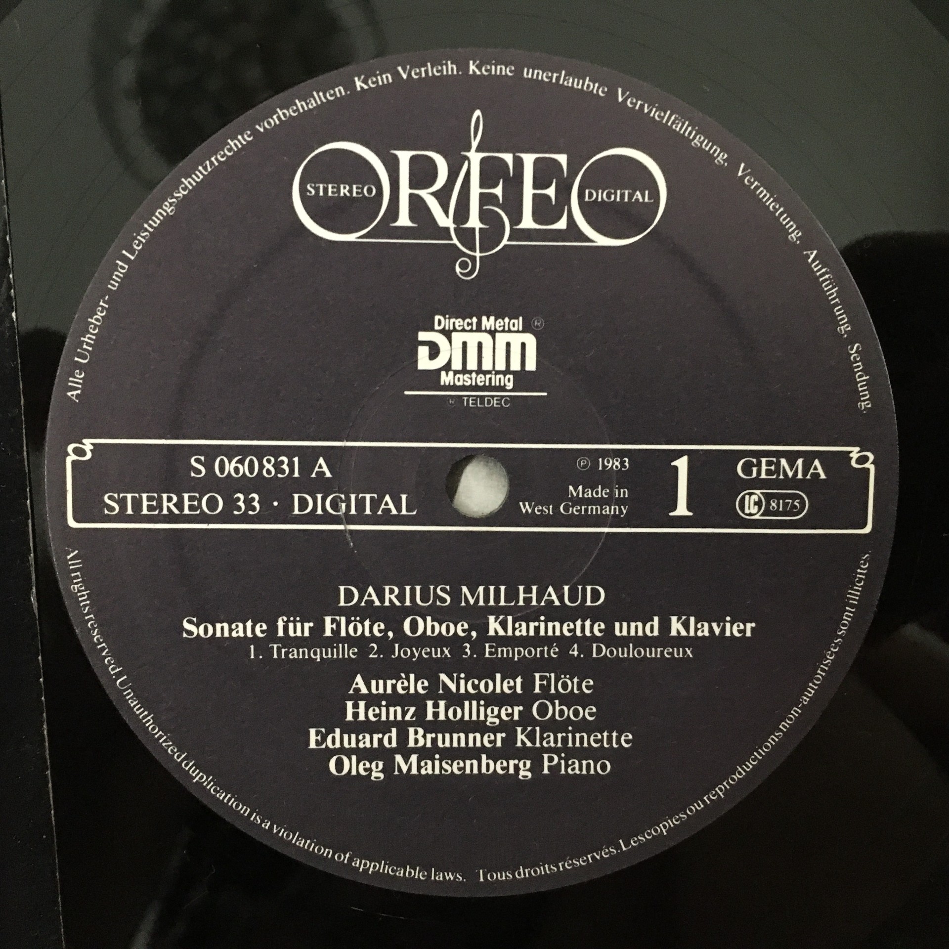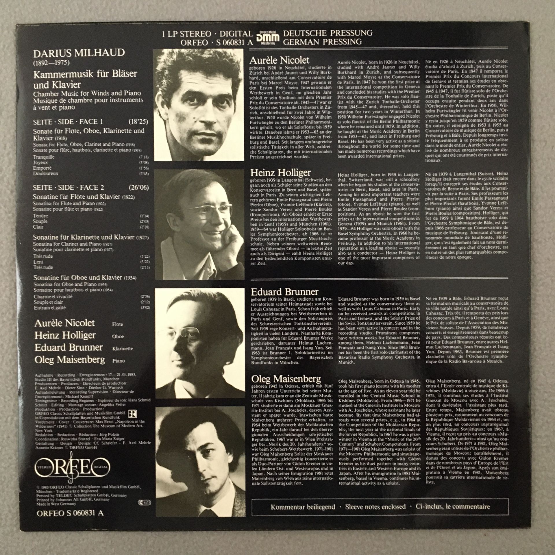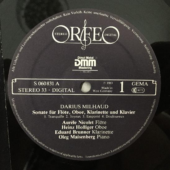 R502 Milhaud Chamber Music for Wind & Piano Nicolet Holliger Orfeo S 060831 A St