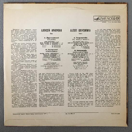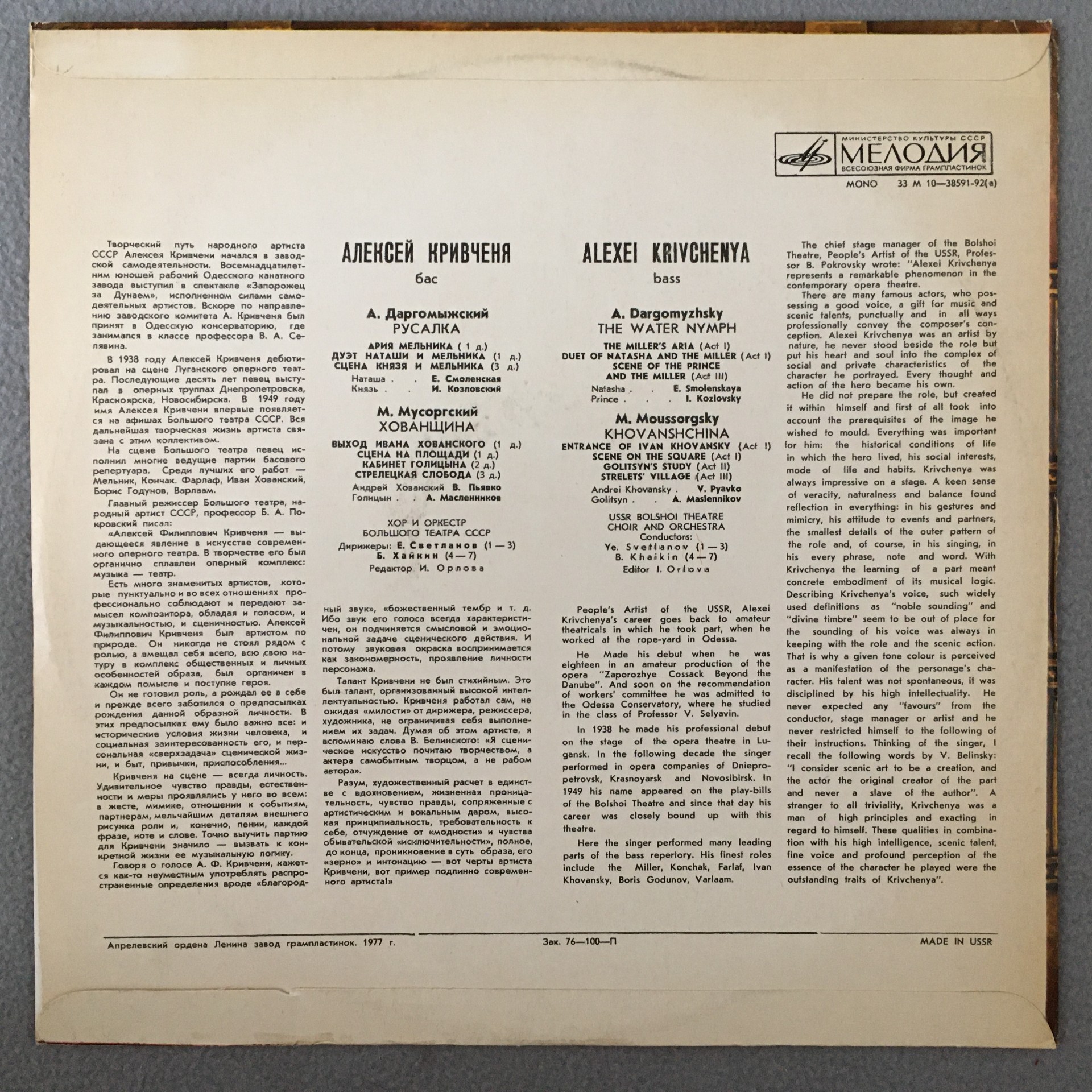R505 Dargomyzhsky Mussorgsky Krivchenya Svetlanov Melodiya 33 M 10-38591-92