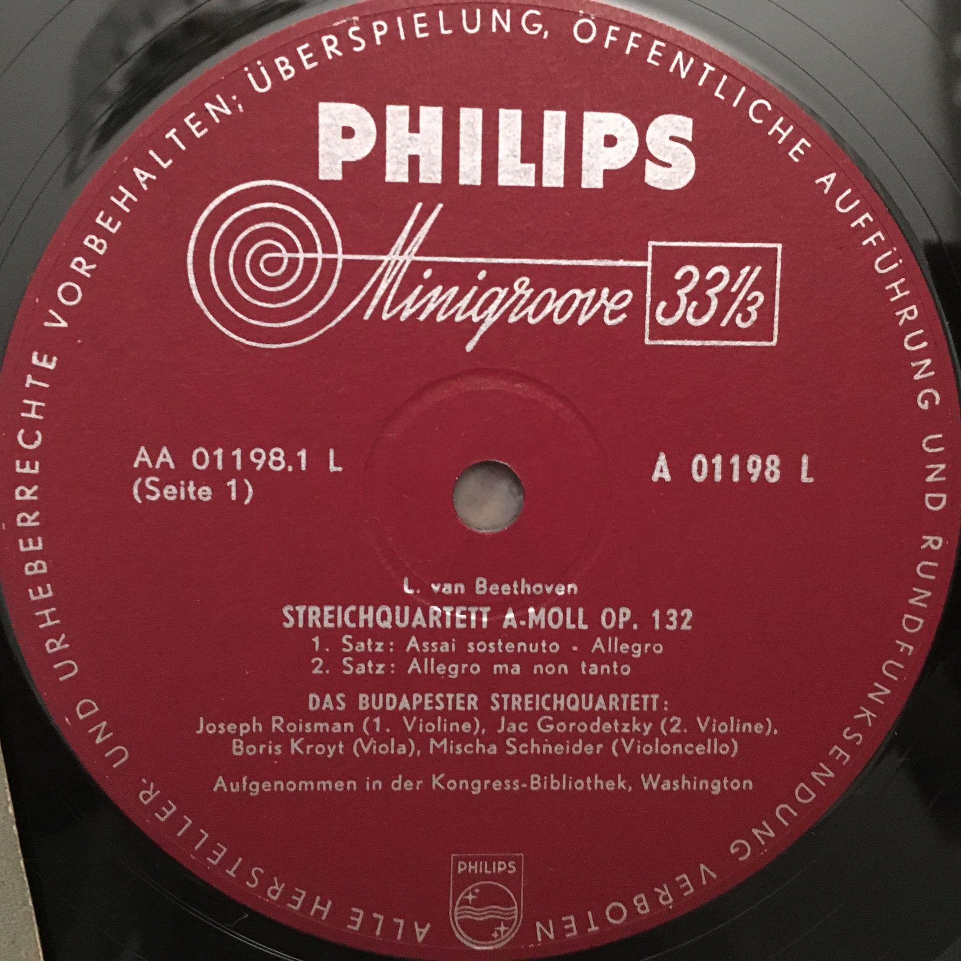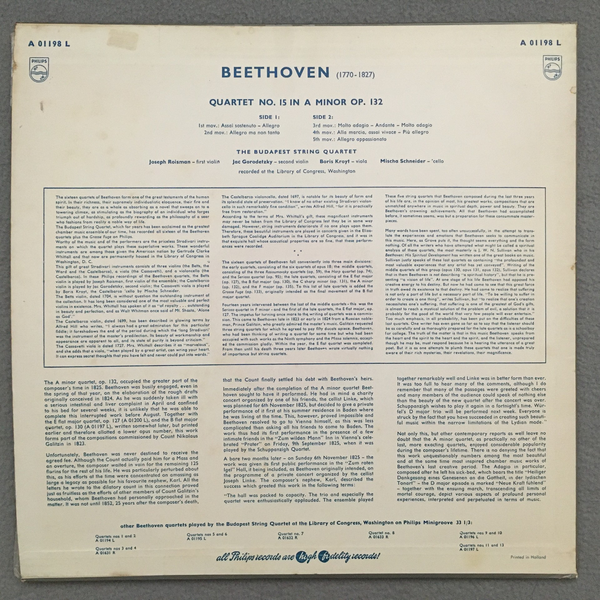 R523 Beethoven String Quartets Budapest String Qu. Philips Minigroove A 01198 L