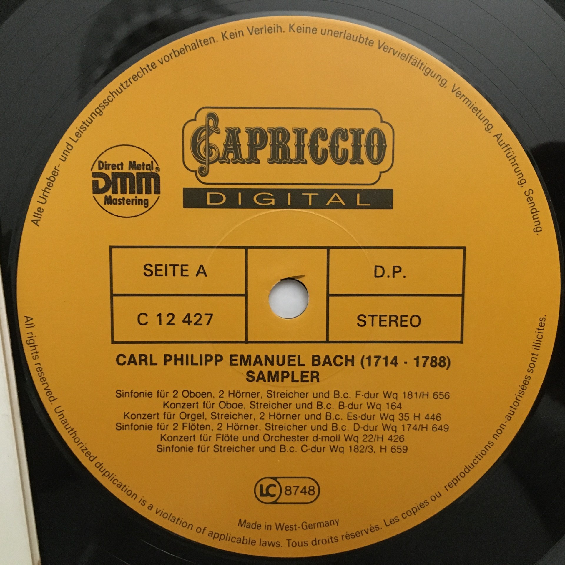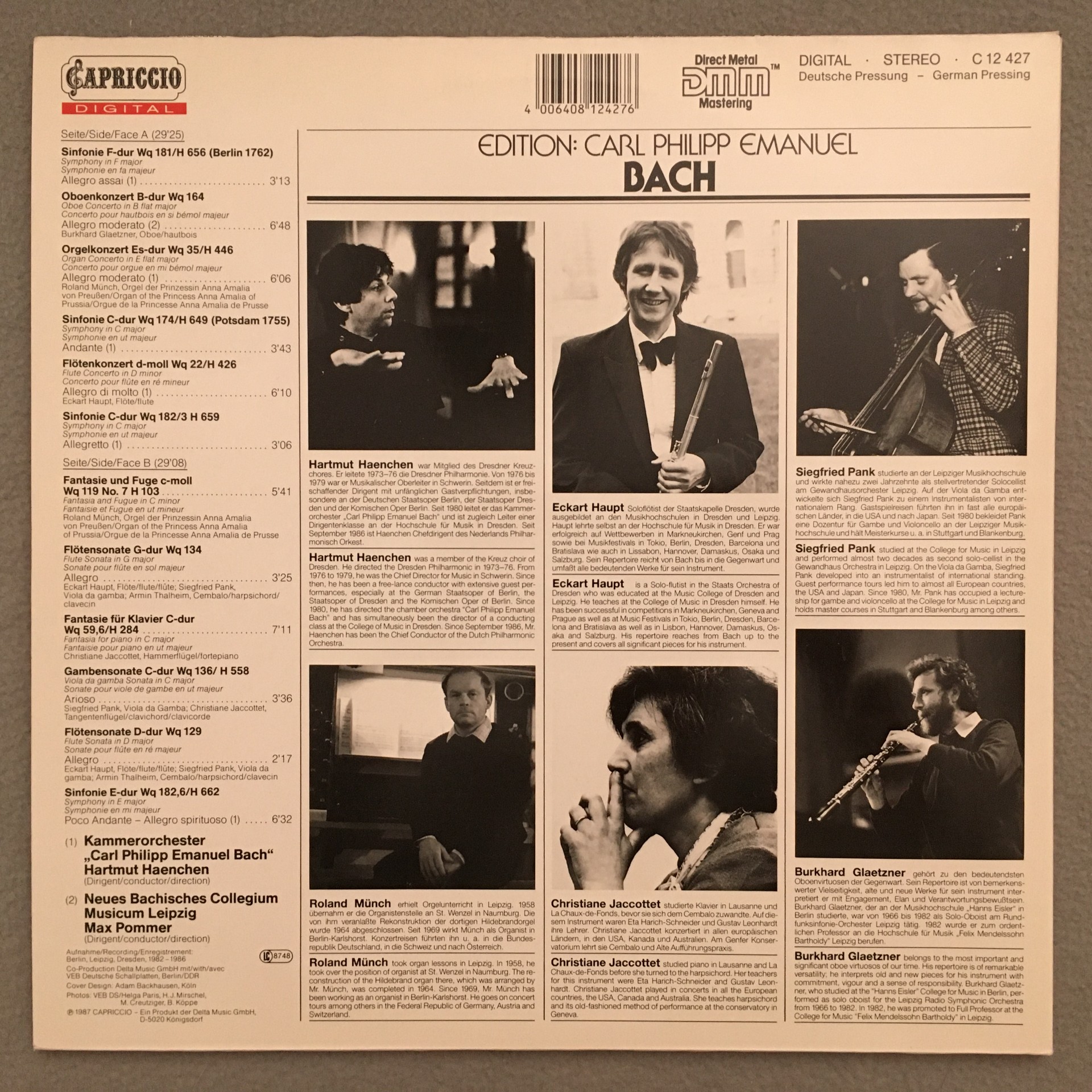 R524 C.P.E. Bach Symphonies Concertos Haenchen Capriccio C 12 427 Digital Stereo