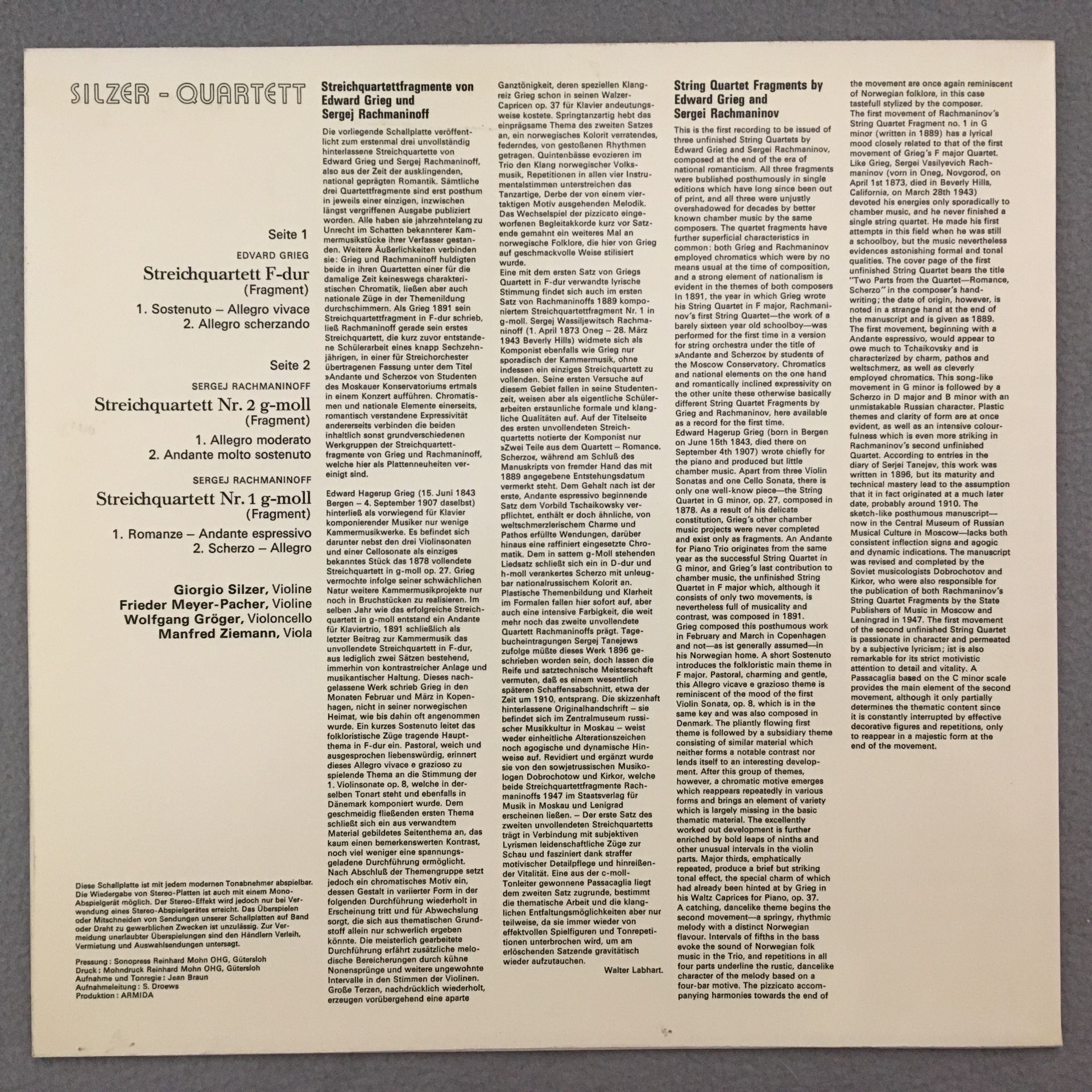 R534 Grieg Rachmaninov String Quartets Silzer Quartet Armida SQ-148 Stereo
