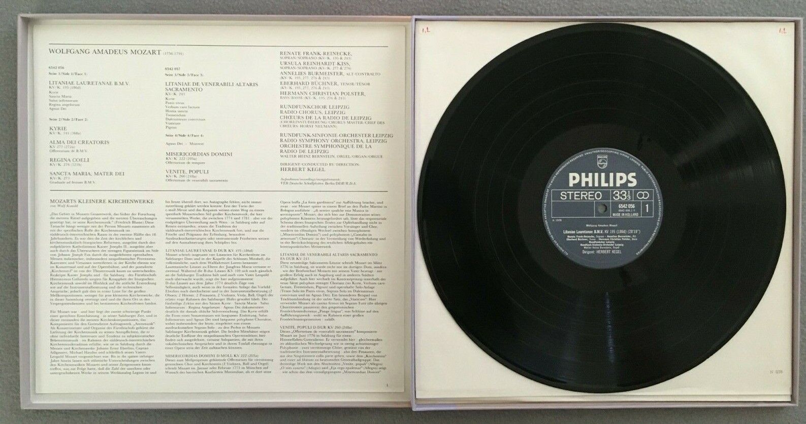 G315 Mozart Sacred Works Kegel 2LP Philips 6768 018 Stereo