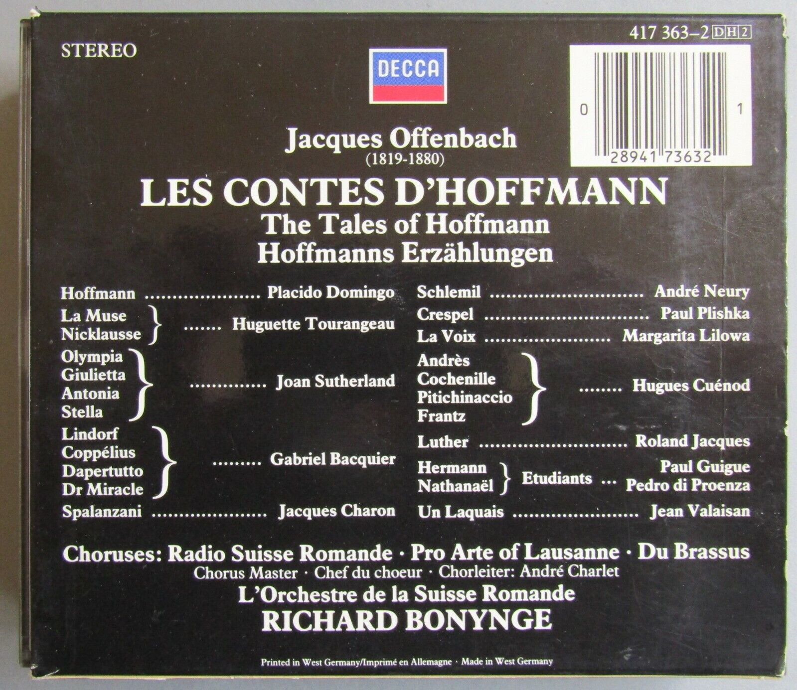 CZ114 Offenbach The Tales of Hoffmann Sutherland Domingo Bonynge DECCA 2CD